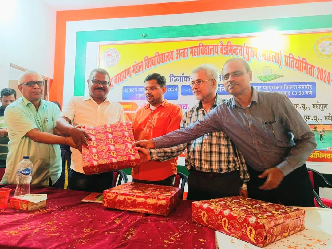 राजेंद्र मिश्र महाविद्यालय में अंतर महाविद्यालय बैडमिंटन (पुरूष एवं महिला) प्रतियोगिता का समापन समारोह। 04 अगस्त, 2024