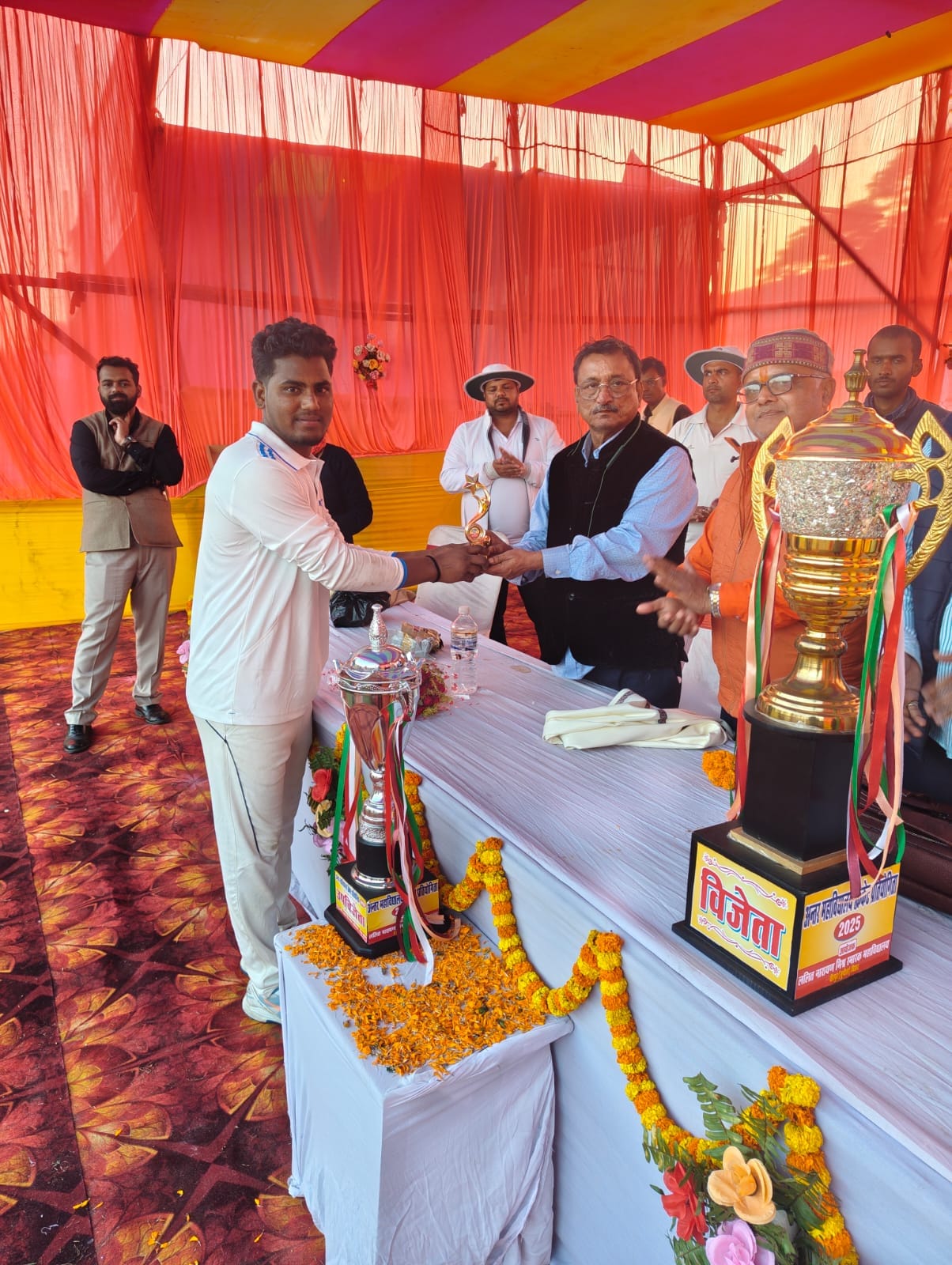 उप विजेता टीम को ट्रॉफी विश्वविद्यालय के खेल निदेशक प्रोफेसर मो. अबुल फ़ज़ल और उप खेल निदेशक डॉ. जैनेन्द्र के हाथों मिला। विजेता टीम को ट्रॉफी बी. एन. मंडल के कुलसचिव प्रो.अशोक कुमार ठाकुर ने सौंपा।
