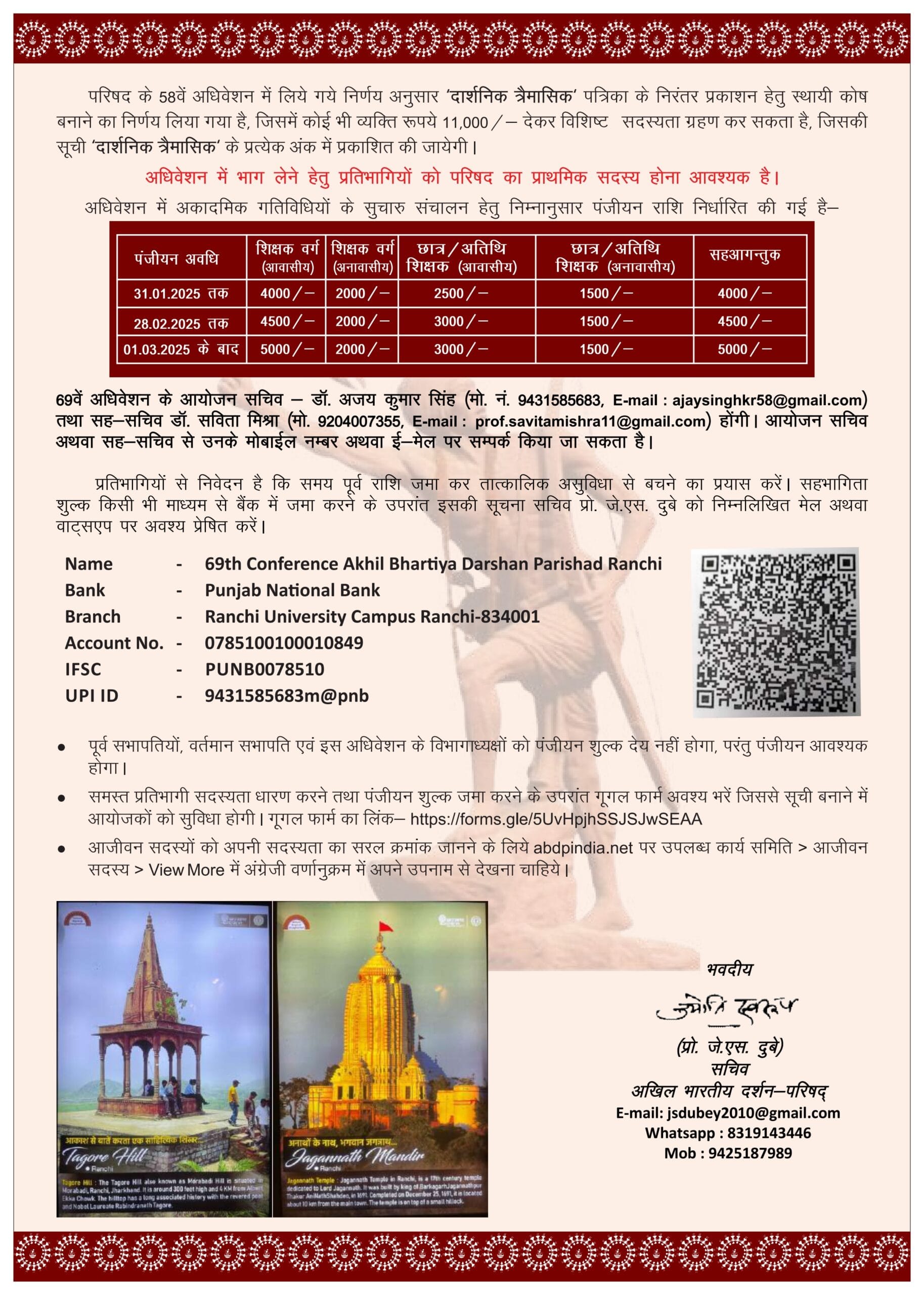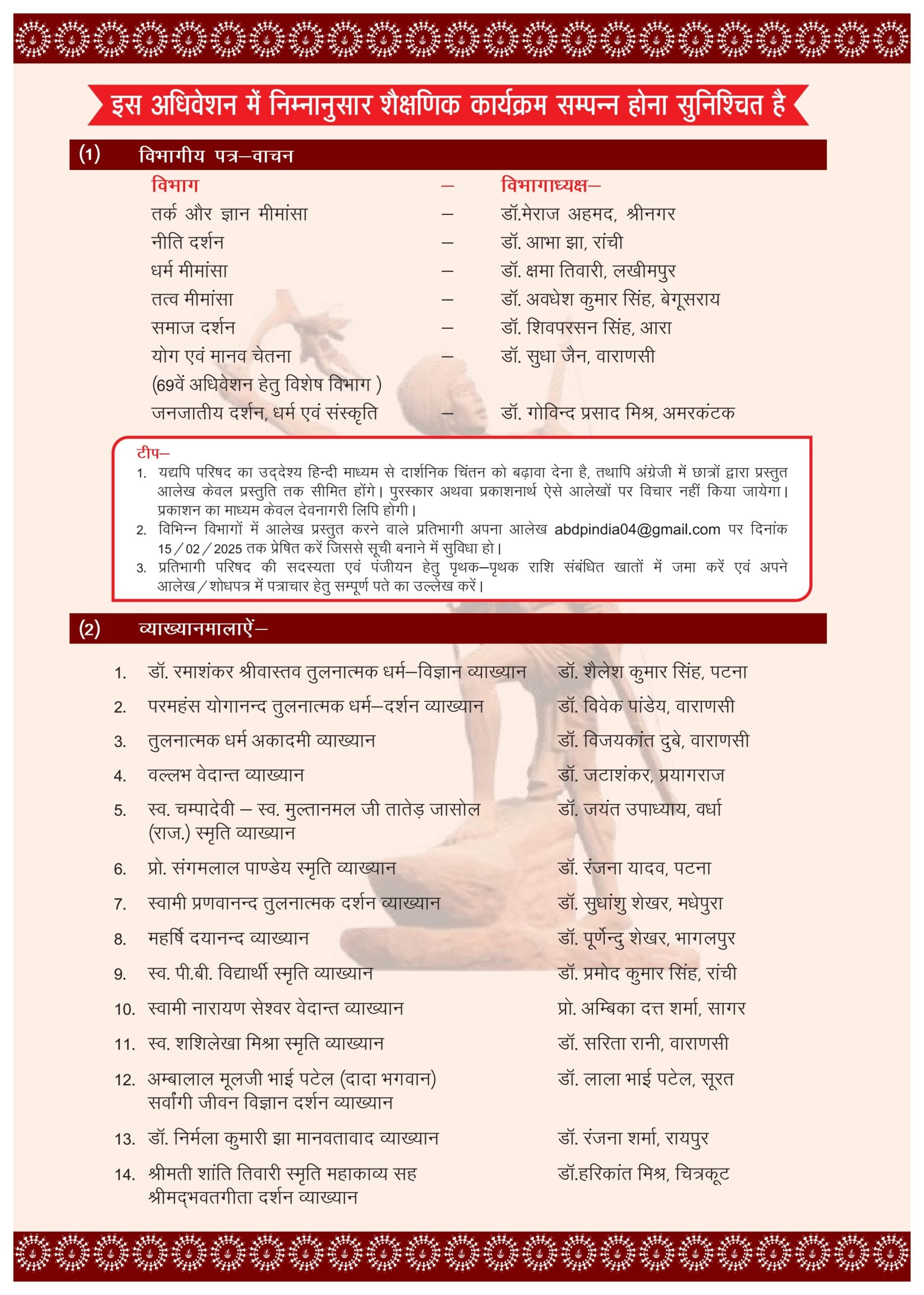 अखिल भारतीय दर्शन परिषद् का 69वां अधिवेशन 22 मार्च, 2025 से।