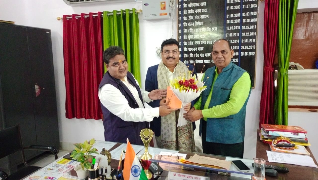 ठाकुर प्रसाद महाविद्यालय, मधेपुरा में प्रधानाचार्य प्रो. कैलाश प्रसाद यादव द्वारा राष्ट्रीय सेवा योजना के क्षेत्रीय निदेशक विनय कुमार का अंगवस्त्रम् पुष्पगुच्छ कुछ एवं गांधी विमर्श पुस्तक देकर सम्मान किया गया। इस अवसर पर कार्यक्रम समन्वयक डॉ. सुधांशु शेखर भी उपस्थित थे।