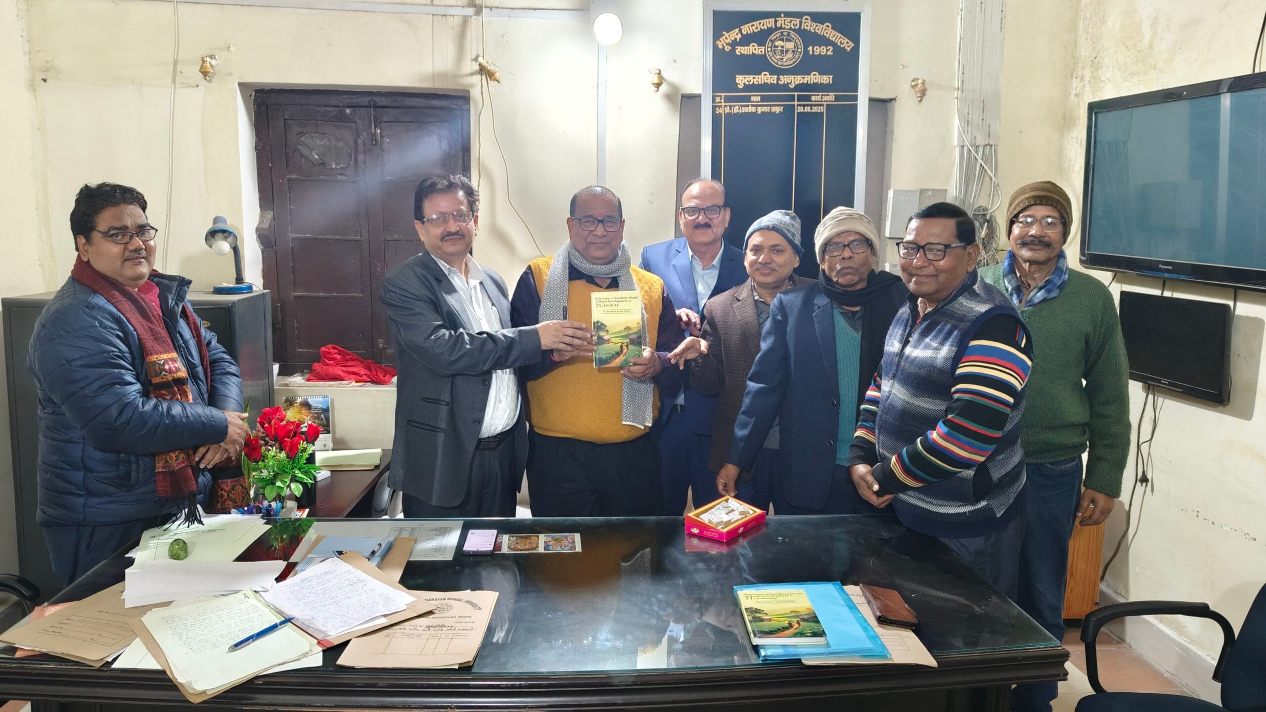 कुलसचिव को भेंट की गई पुस्तक