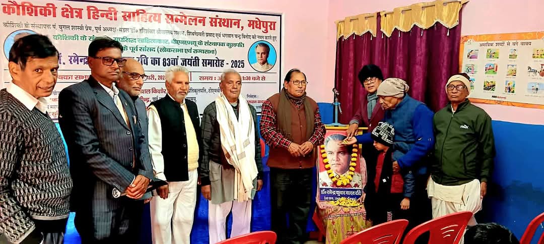 आज कौशिकी क्षेत्र हिंदी साहित्य सम्मेलन संस्थान, मधेपुरा के ‘अंबिका सभागार’ में धूमधाम से “डॉ. रवि जयंती” का आयोजन किया गया। कार्यक्रम की अध्यक्षता कौशिकी के अध्यक्ष व टीएमबीयू के पूर्व प्रतिकुलपति डॉ.के.के. मंडल ने की, जबकि मुख्य अतिथि पूर्व कुलसचिव प्रो.सचिंद्र महतो एवं मुख्य वक्ता साहित्यकार प्रो. मणिभूषण वर्मा रहे।