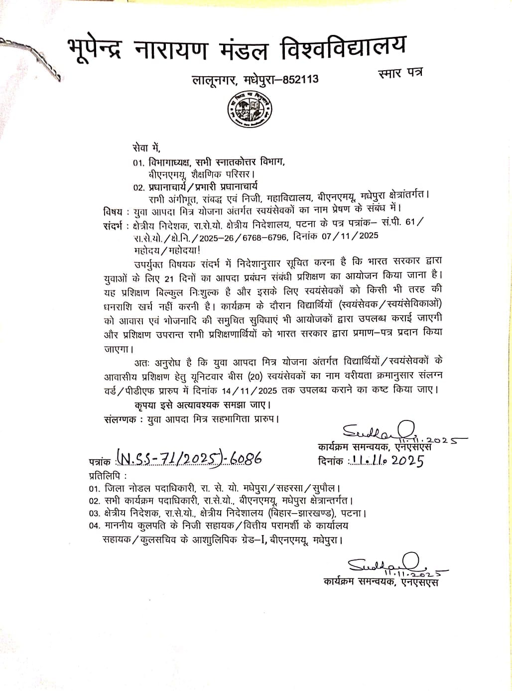 ठाकुर प्रसाद महाविद्यालय, मधेपुरा में विधायक सह पूर्व शिक्षा मंत्री प्रो. चंद्रशेखर की निधि से नवनिर्मित इनडोर मल्टी जिम का लोकार्पण 2 जुलाई, 2025 (बुधवार) को अपराह्न एक बजे होगा। संयोजक डॉ. सुधांशु शेखर ने बताया कि कार्यक्रम में लोकार्पणकर्ता-सह-मुख्य अतिथि अतिथि के रूप में कुलपति प्रो. बी. एस. झा की गरिमामयी उपस्थित रहेगी। इस अवसर पर विशिष्ट अतिथि के रूप में नवनियुक्त कुलसचिव प्रो. अशोक कुमार ठाकुर सहित अन्य गणमान्य लोग भी उपस्थित रहेंगे। कार्यक्रम की अध्यक्षता प्रधानाचार्य प्रो. कैलाश प्रसाद यादव करेंगे।