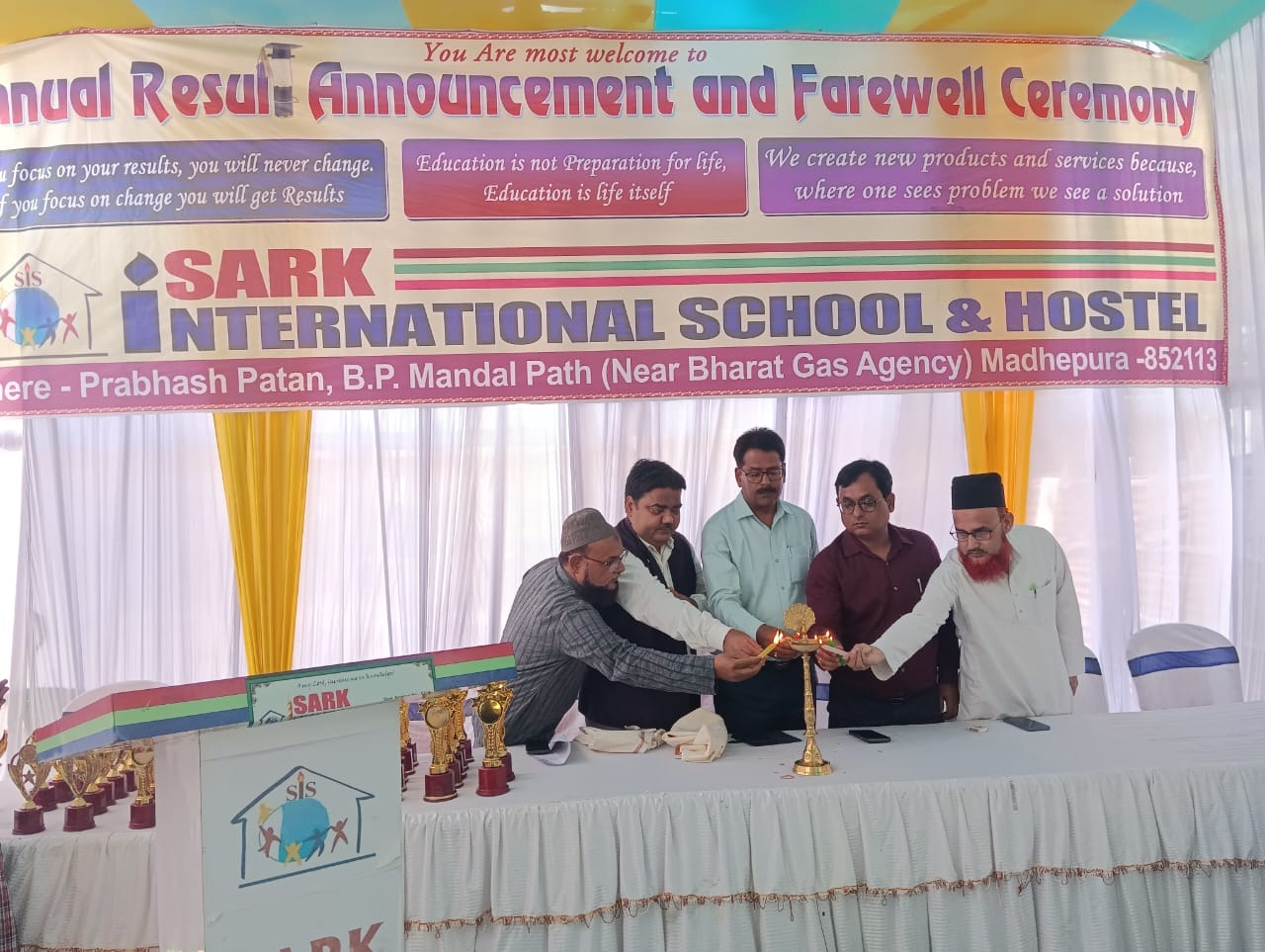 जिला मुख्यालय के सार्क इंटरनेशनल स्कूल में शनिवार 05 अप्रैल, 2025 (शनिवार) को एनुअल रिजल्ट डे का भव्य आयोजन किया गया। शंकर मिश्रा, मुख्य अतिथि टी. पी. डॉ. दर्शनशास्त्र विभागाध्यक्ष डॉ. सुधांशु शेखर, विशिष्ट अतिथि सार्क फाउंडेशन ट्रस्ट के सचिव आर रहमान, नेता अबू जफर, निर्माता हर्ष वर्धन सिंह टेलर, वकी अहमद ने संयुक्त रूप से भंडारा किया। इसके पूर्व आर्केस्ट्रा को अंगवस्त्र और पुस्तक के निदेशक अबू जफर, सचिव आर रहमान को संयुक्त रूप से नियुक्त किया गया। कार्यक्रम की शुरुआत राष्ट्रगान जन-गण-मन के सामूहिक गायन के साथ हुई।