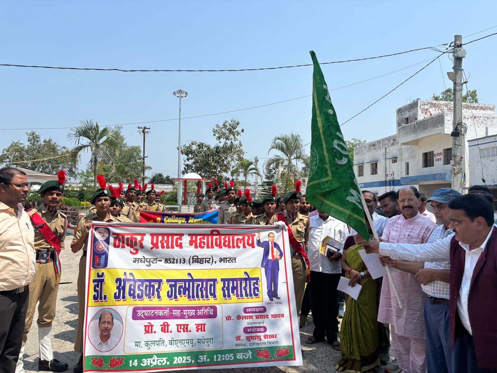 ठाकुर प्रसाद महाविद्यालय, मधेपुरा में राष्ट्रीय सेवा योजना एवं राष्ट्रीय कैडेट कोर के संयुक्त तत्वावधान में भारतरत्न डॉ. भीमराव अंबेडकर की 135वीं जयंती पर जागरूकता रैली निकाली गई। रैली महाविद्यालय के मुख्य परिसर अवस्थित ठाकुर प्रसाद प्रतिमा स्थल से निकलकर विज्ञान परिसर में अवस्थित कीर्ति नारायण मंडल प्रतिमा स्थल तक गई। रैली को मुख्य अतिथि कुलपति प्रो. बी. एस. झा ने हरी झंडी दिखाकर रवाना किया।