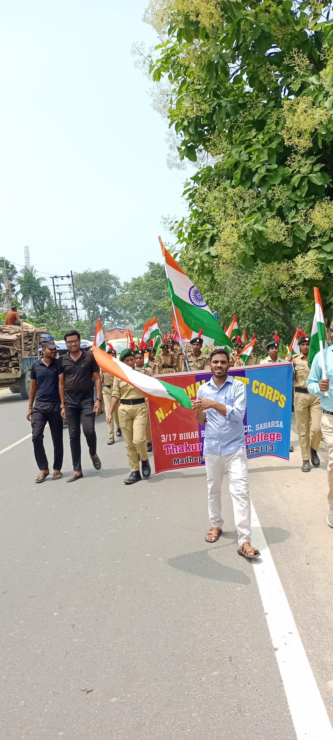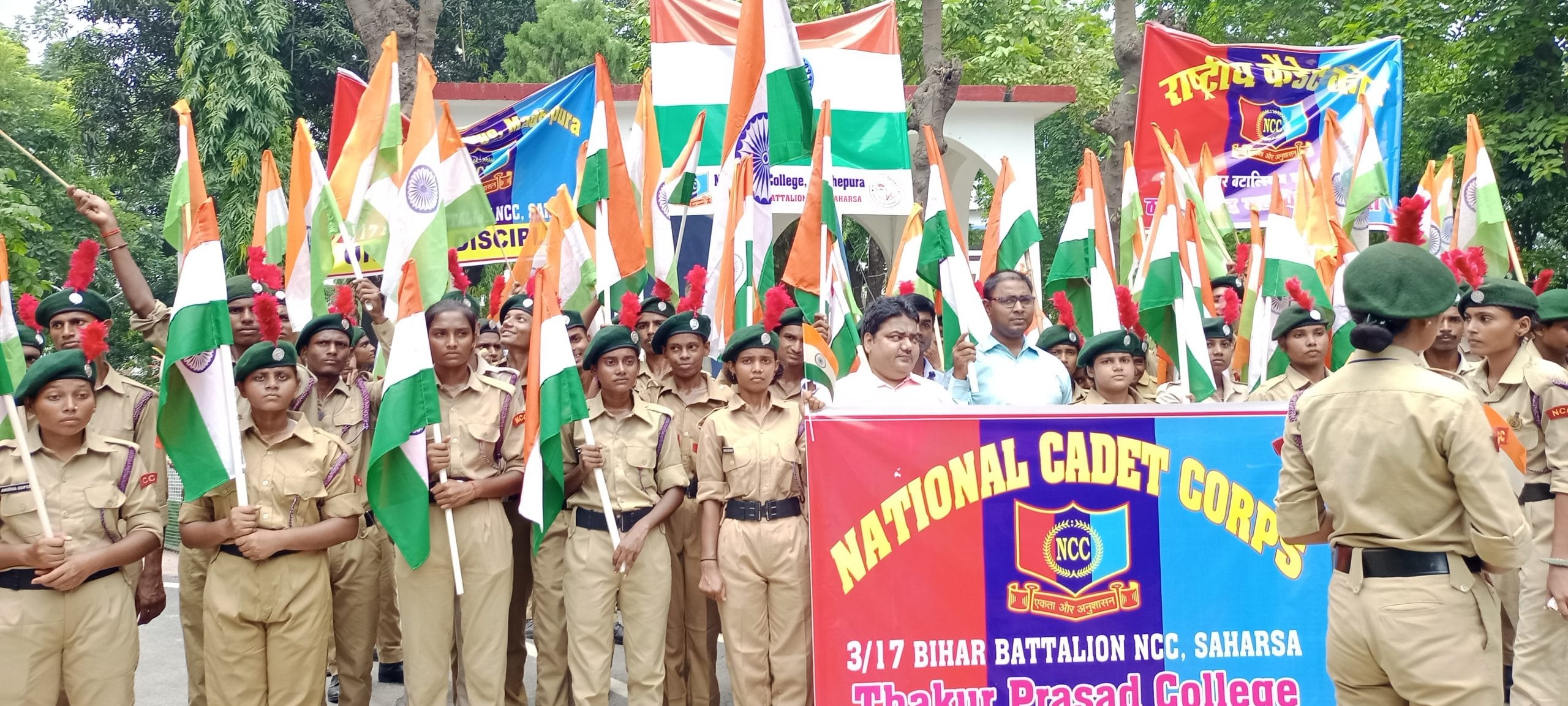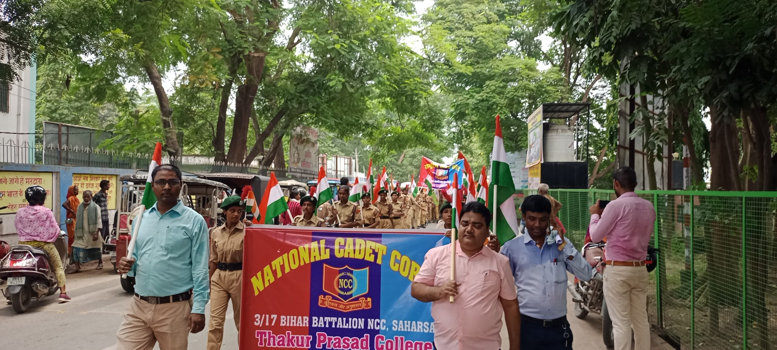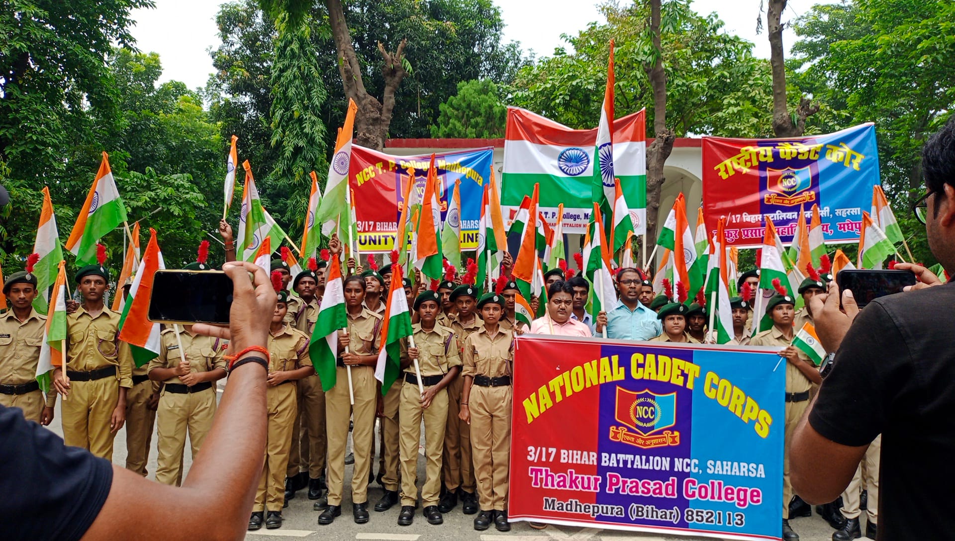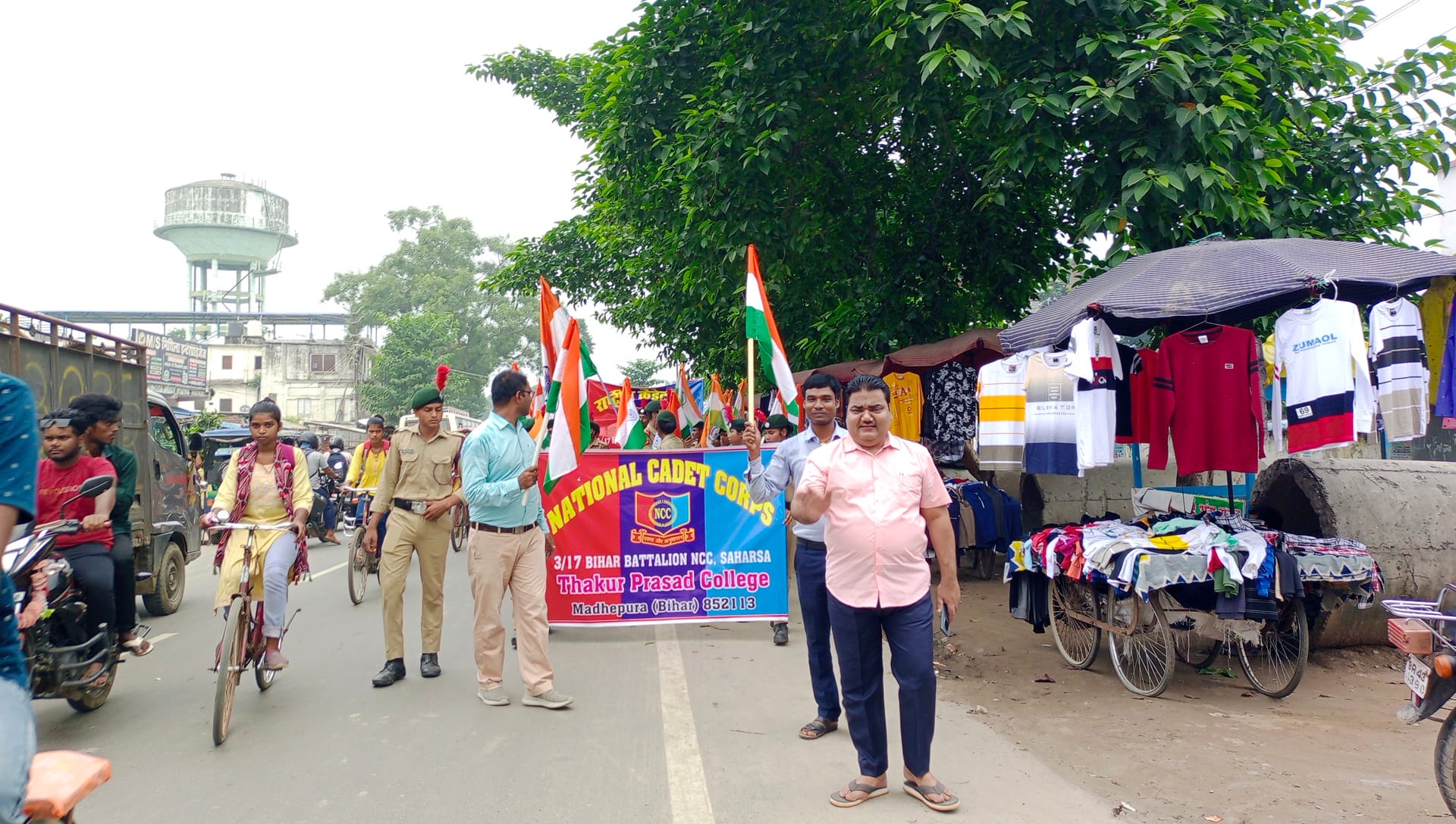 यह बात बीएनएमयू, मधेपुरा के कुलपति प्रो. बी. एस. झा ने कही। वे मंगलवार को तिरंगा रैली में शामिल जनसमूह को संबोधित कर रहे थे। कार्यक्रम का आयोजन ठाकुर प्रसाद महाविद्यालय, मधेपुरा के राष्ट्रीय कैडेट कोर (एनसीसी) एवं राष्ट्रीय सेवा योजना (एनएसएस) के संयुक्त तत्वावधान में किया गया।