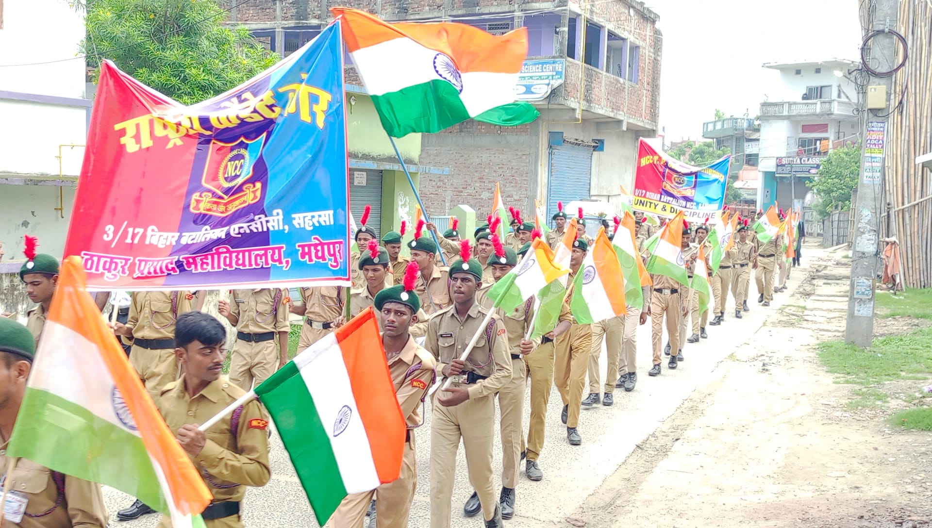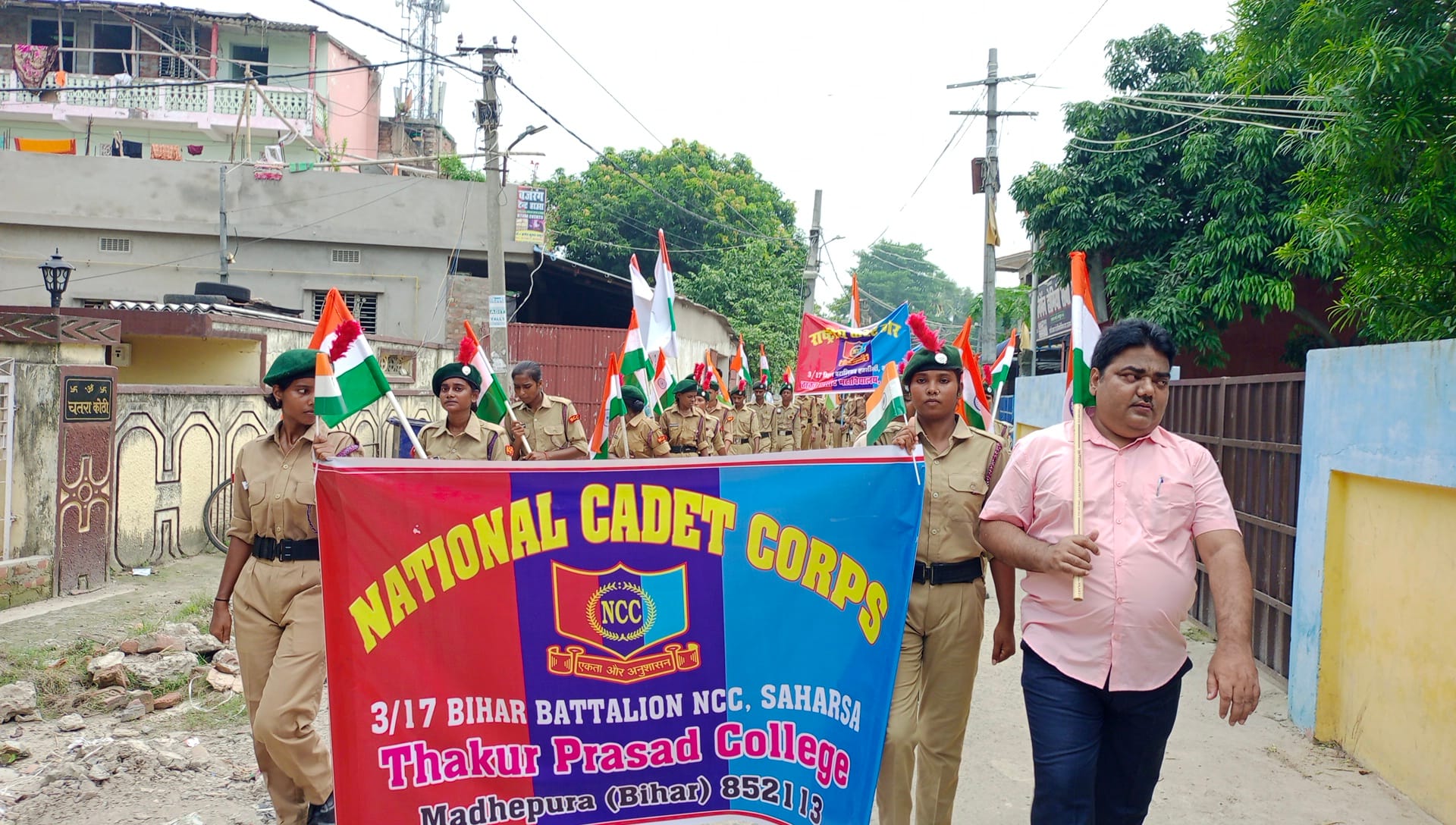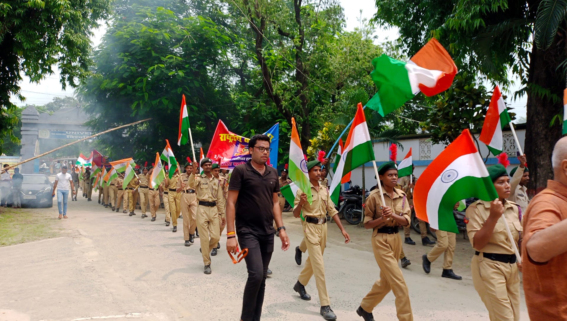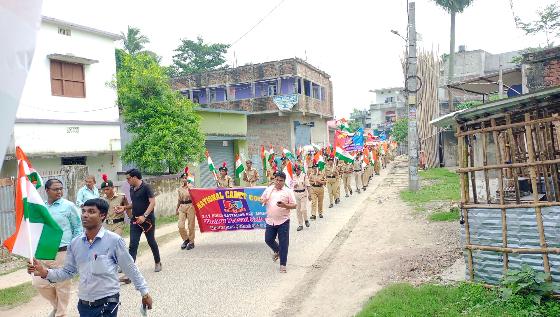 यह बात बीएनएमयू, मधेपुरा के कुलपति प्रो. बी. एस. झा ने कही। वे मंगलवार को तिरंगा रैली में शामिल जनसमूह को संबोधित कर रहे थे। कार्यक्रम का आयोजन ठाकुर प्रसाद महाविद्यालय, मधेपुरा के राष्ट्रीय कैडेट कोर (एनसीसी) एवं राष्ट्रीय सेवा योजना (एनएसएस) के संयुक्त तत्वावधान में किया गया।