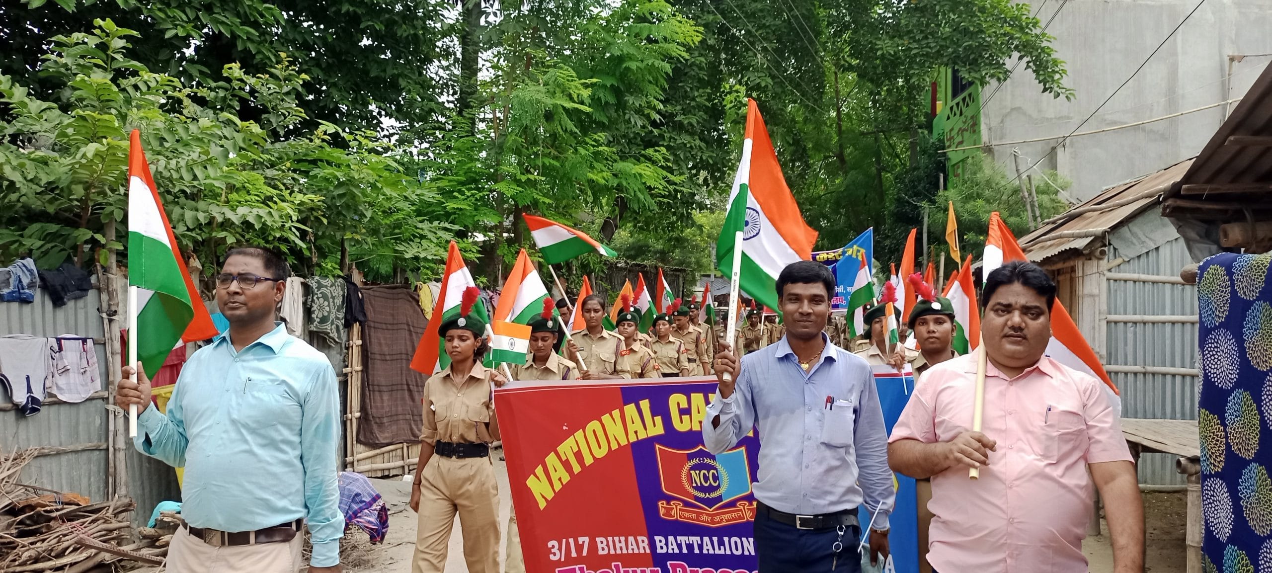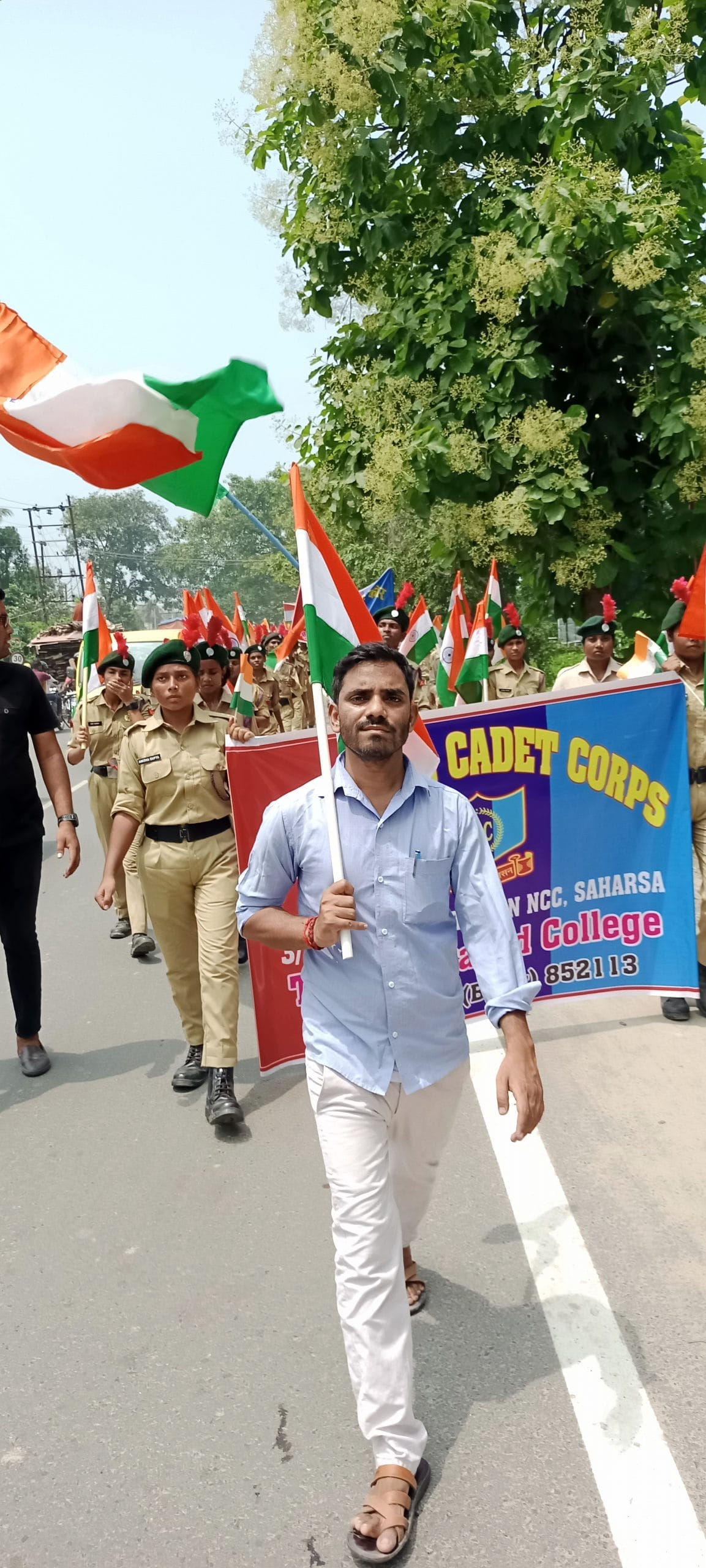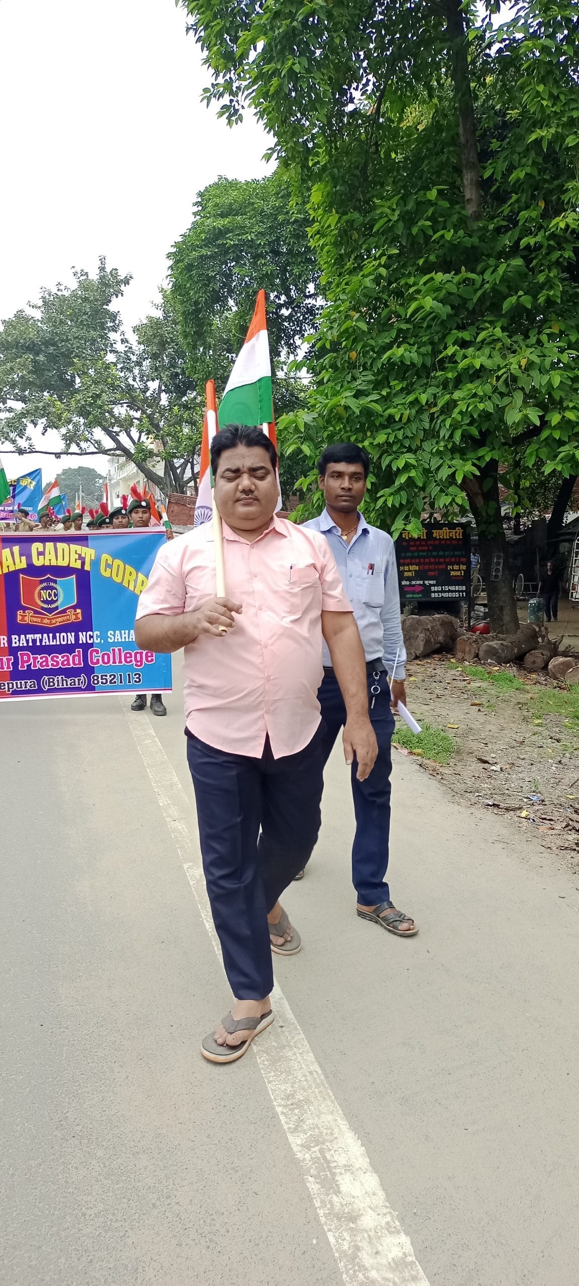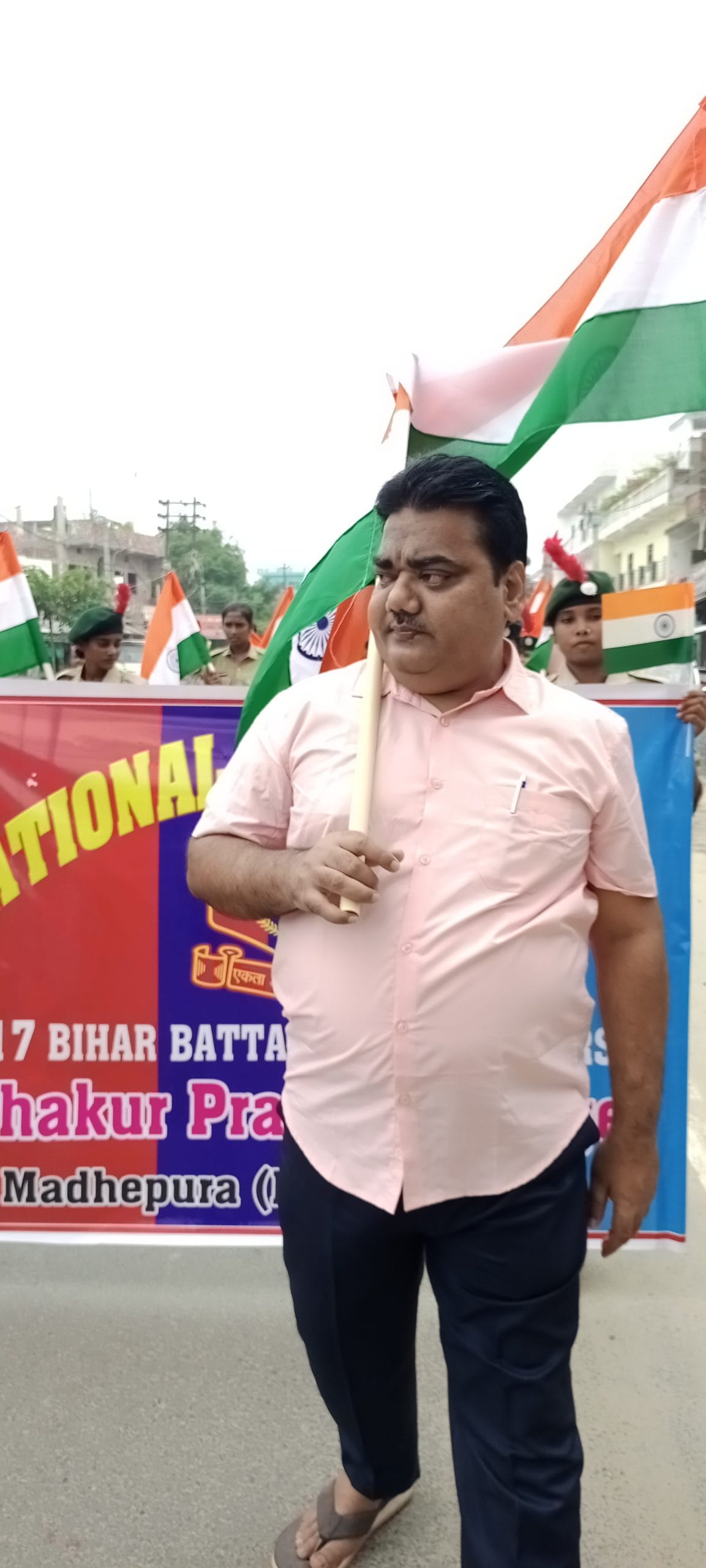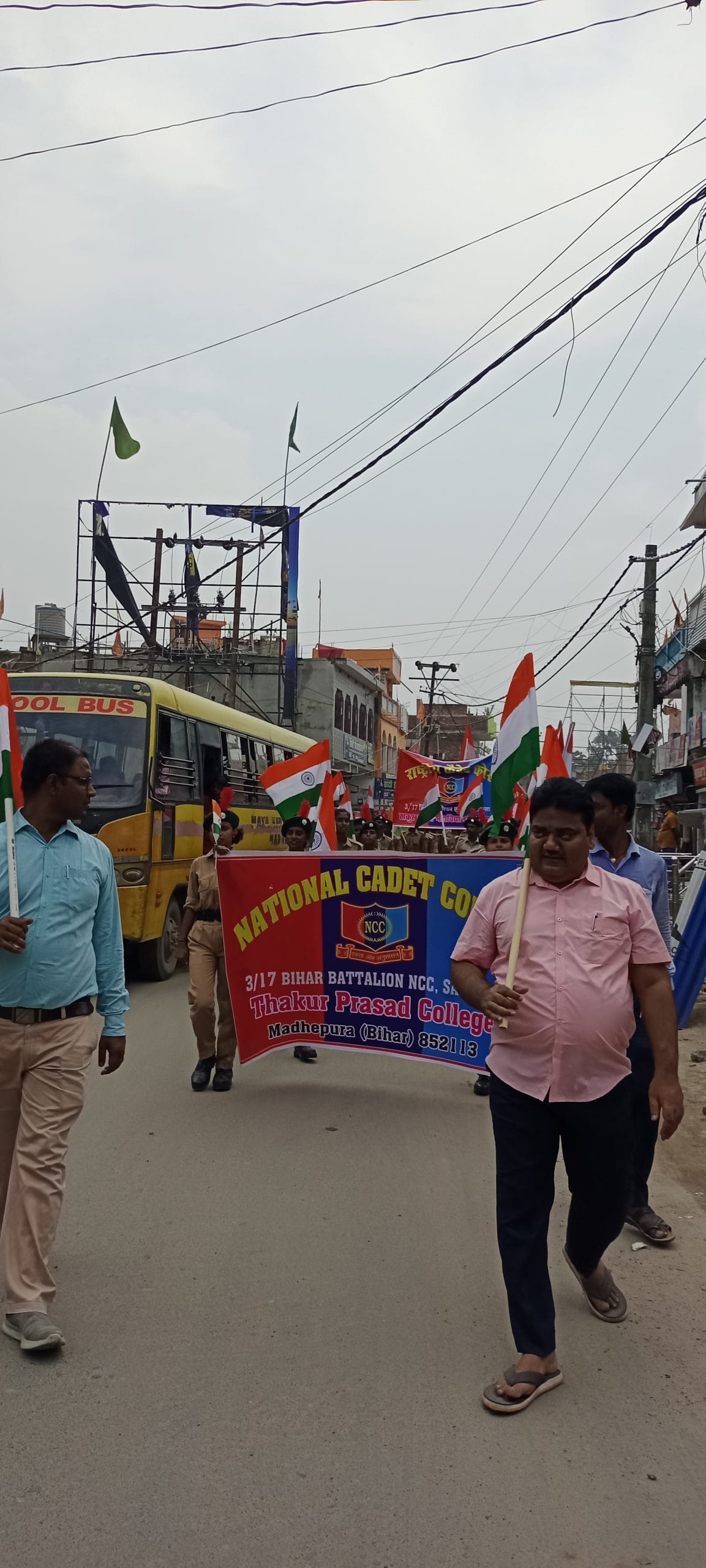 यह बात बीएनएमयू, मधेपुरा के कुलपति प्रो. बी. एस. झा ने कही। वे मंगलवार को तिरंगा रैली में शामिल जनसमूह को संबोधित कर रहे थे। कार्यक्रम का आयोजन ठाकुर प्रसाद महाविद्यालय, मधेपुरा के राष्ट्रीय कैडेट कोर (एनसीसी) एवं राष्ट्रीय सेवा योजना (एनएसएस) के संयुक्त तत्वावधान में किया गया।
