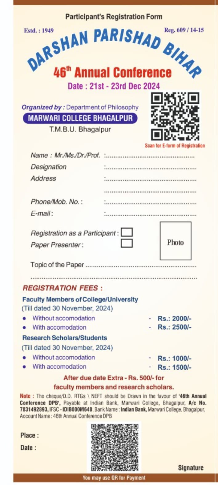 दर्शन परिषद्, बिहार का 46 वां वार्षिक अधिवेशन (21 से 23 दिसंबर) मारवाड़ी कॉलेज, तिलका माँझी भागलपुर विश्वविद्यालय, भागलपुर में