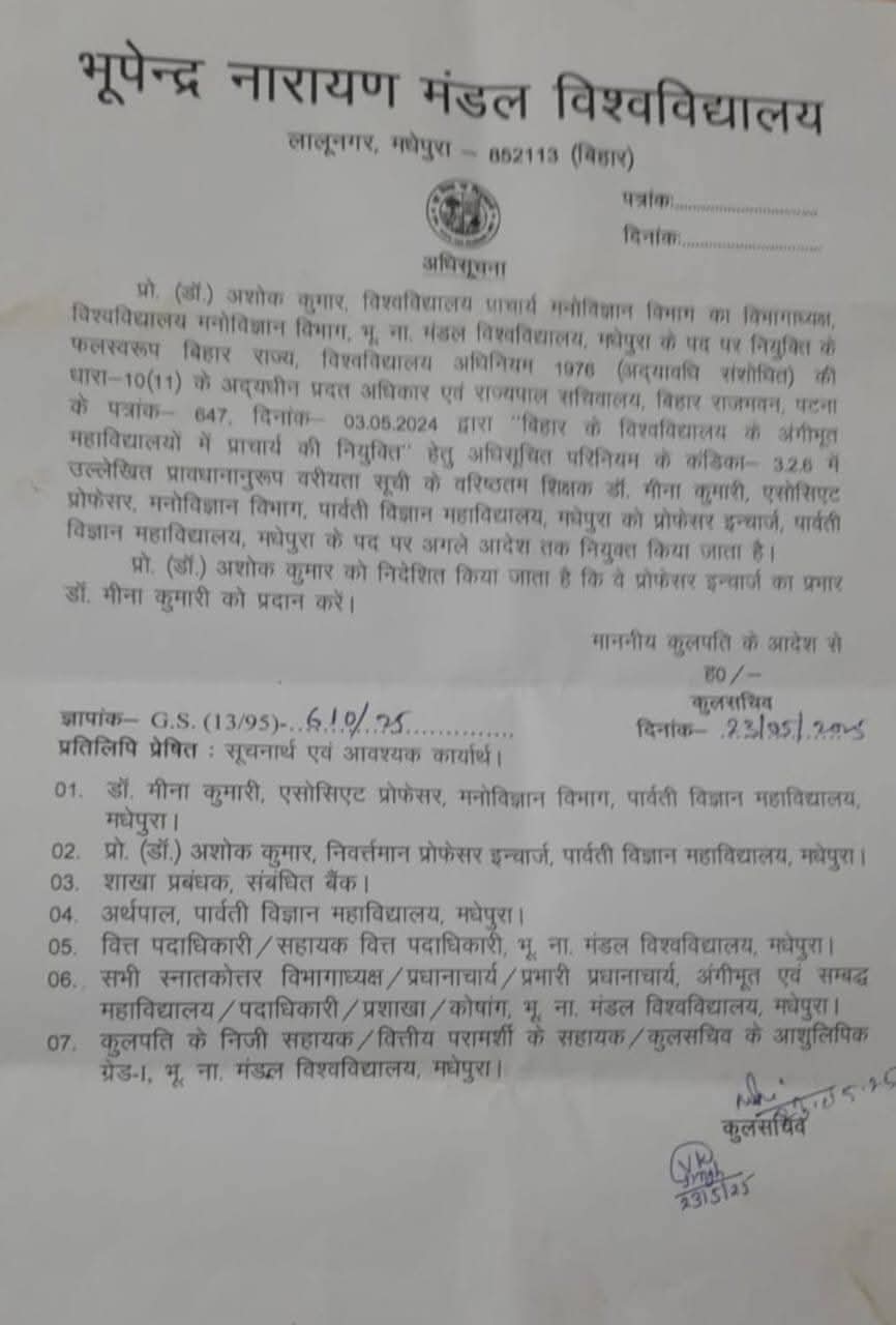 पार्वती विज्ञान महाविद्यालय, मधेपुरा की प्राचार्य नियुक्त होने पर एसोसिएट प्रोफेसर (मनोविज्ञान) डॉ. मीना कुमारी जी को हार्दिक बधाई एवं शुभकामनाएं।