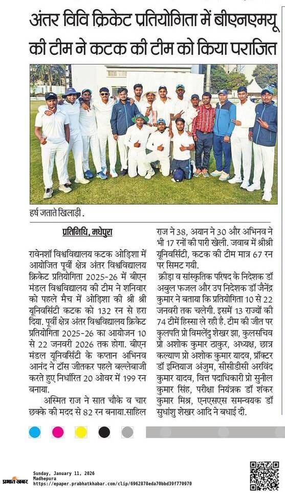 भूपेन्द्र नारायण मंडल विश्वविद्यालय, मधेपुरा के कुलपति प्रो. बी. एस., झा ने 22 दिसंबर, 2025 को आर्यभट्ट ज्ञान विश्वविद्यालय, पटना में आयोजित पूर्वी क्षेत्र के कुलपतियों के सम्मेलन में भाग लिया।