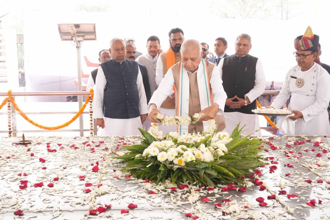 बिहार के माननीय राज्यपाल श्री आरिफ मोहम्मद खां ने भारत के प्रथम राष्ट्रपति देशरत्न डॉ. राजेन्द्र प्रसाद के 62वें निर्वाण दिवस के अवसर पर आयोजित राजकीय समारोह में महाप्रयाण घाट (बाँसघाट), पटना स्थित उनकी समाधि पर पुष्पचक्र अर्पित कर भावभीनी श्रद्धांजलि अर्पित की।
