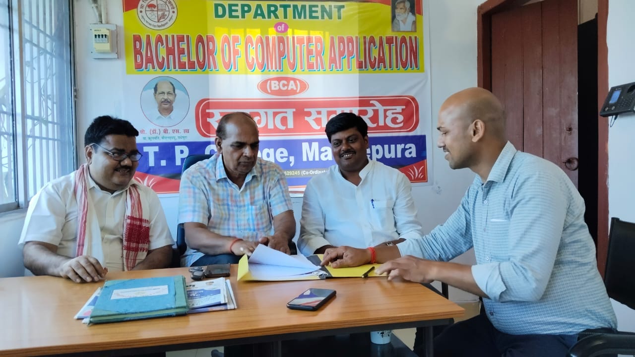 ठाकुर प्रसाद महाविद्यालय, मधेपुरा के बैचलर ऑफ कम्प्यूटर एप्लीकेशन (बीसीए) विभाग में मंगलवार तक 23 नामांकन हो चुका है। मंगलवार को प्रधानाचार्य प्रो. कैलाश प्रसाद यादव की अध्यक्षता में 8 जुलाई, 2025 (मंगलवार) को एक बैठक आयोजित कर नामांकन की प्रगति की समीक्षा की गई।