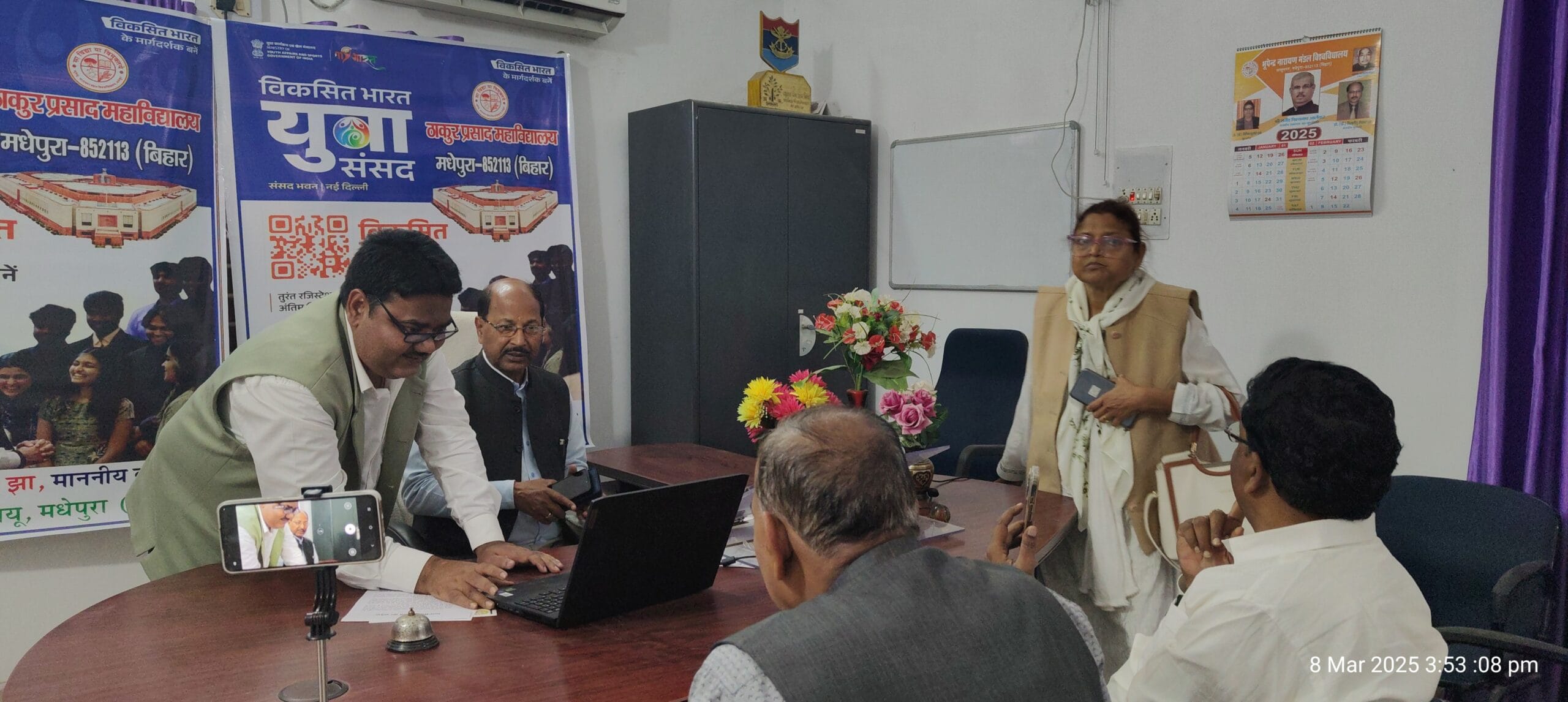 भारत सरकार ने वर्ष 2047 तक भारत को विकसित बनाने का संकल्प लिया है। इसमें युवाओं की महती भूमिका है। यह बात बीएनएमयू, मधेपुरा के कुलपति प्रो. बी. एस. झा ने कही। वे शनिवार को ऑनलाइन बैठक में अध्यक्ष के रूप में बोल रहे थे। बैठक का आयोजन ठाकुर प्रसाद महाविद्यालय, मधेपुरा द्वारा युवा संसद जागरूकता कार्यक्रम के अंतर्गत किया गया था।