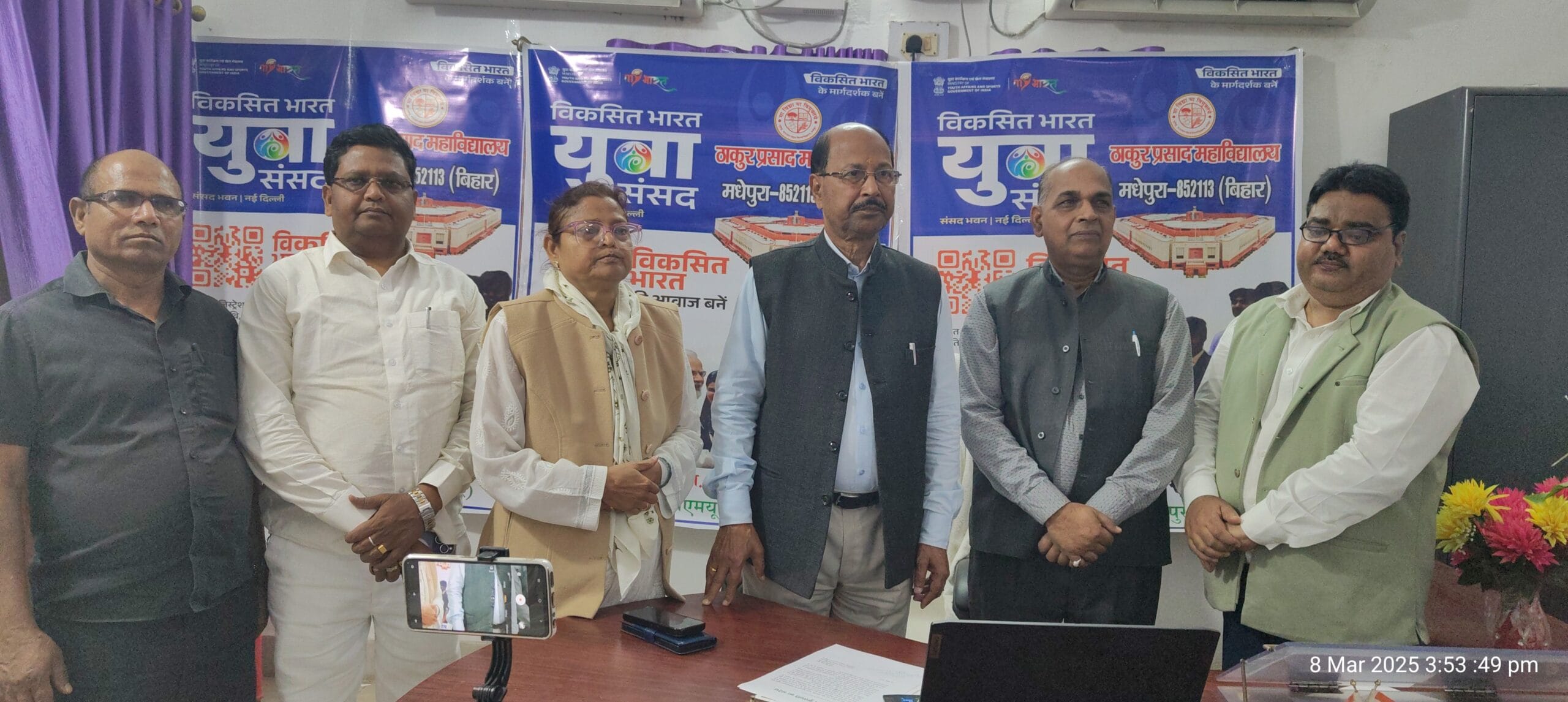 अतिथियों का स्वागत करते हुए प्रधानाचार्य प्रो. कैलाश प्रसाद यादव ने बताया कि आगामी 20 मार्च को ठाकुर प्रसाद महाविद्यालय में मधेपुरा, सहरसा एवं सुपौल तीनों जिलों का जिला स्तरीय कार्यक्रम होना है। इसमें उत्कृष्ट प्रदर्शन करने वाले दस प्रतिभागी बिहार विधानसभा, पटना में अपनी प्रस्तुति देंगे। राज्य स्तर पर चयनित तीन प्रतिभागियों को भारत की संसद में जाकर अपने विचार रखने का सुनहरा अवसर प्राप्त होगा।