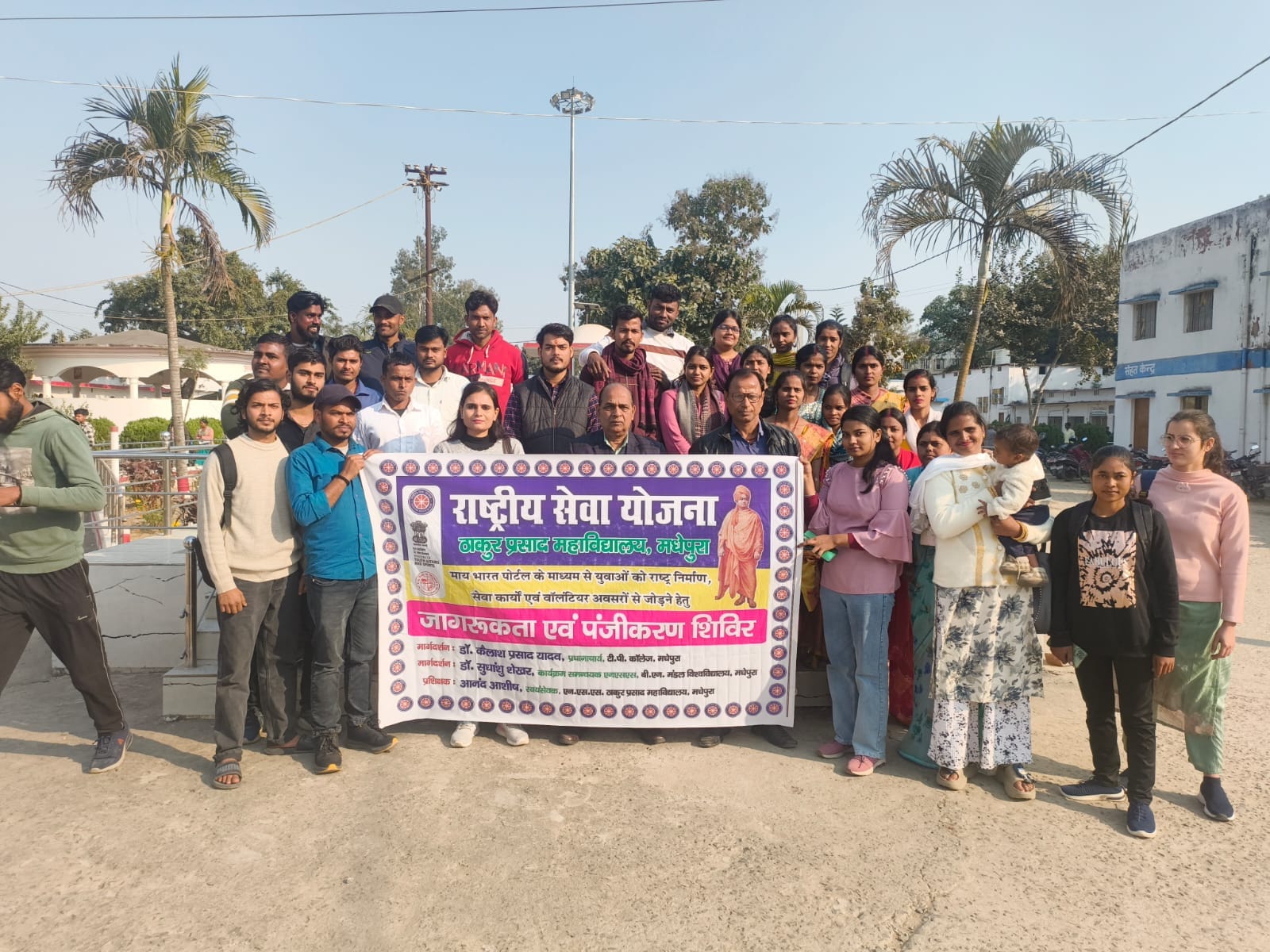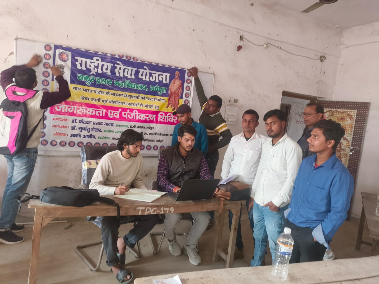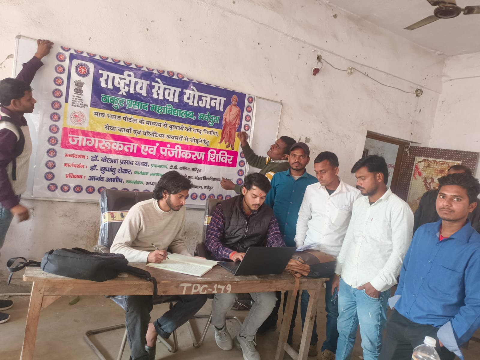मधेपुरा। राष्ट्रीय सेवा योजना (एनएसएस), ठाकुर प्रसाद महाविद्यालय, मधेपुरा द्वारा माय भारत पोर्टल के माध्यम से युवाओं को राष्ट्र निर्माण, सेवा कार्यों एवं वॉलंटियर अवसरों से जोड़ने हेतु एक दिवसीय जागरूकता एवं पंजीकरण शिविर का आयोजन किया गया।