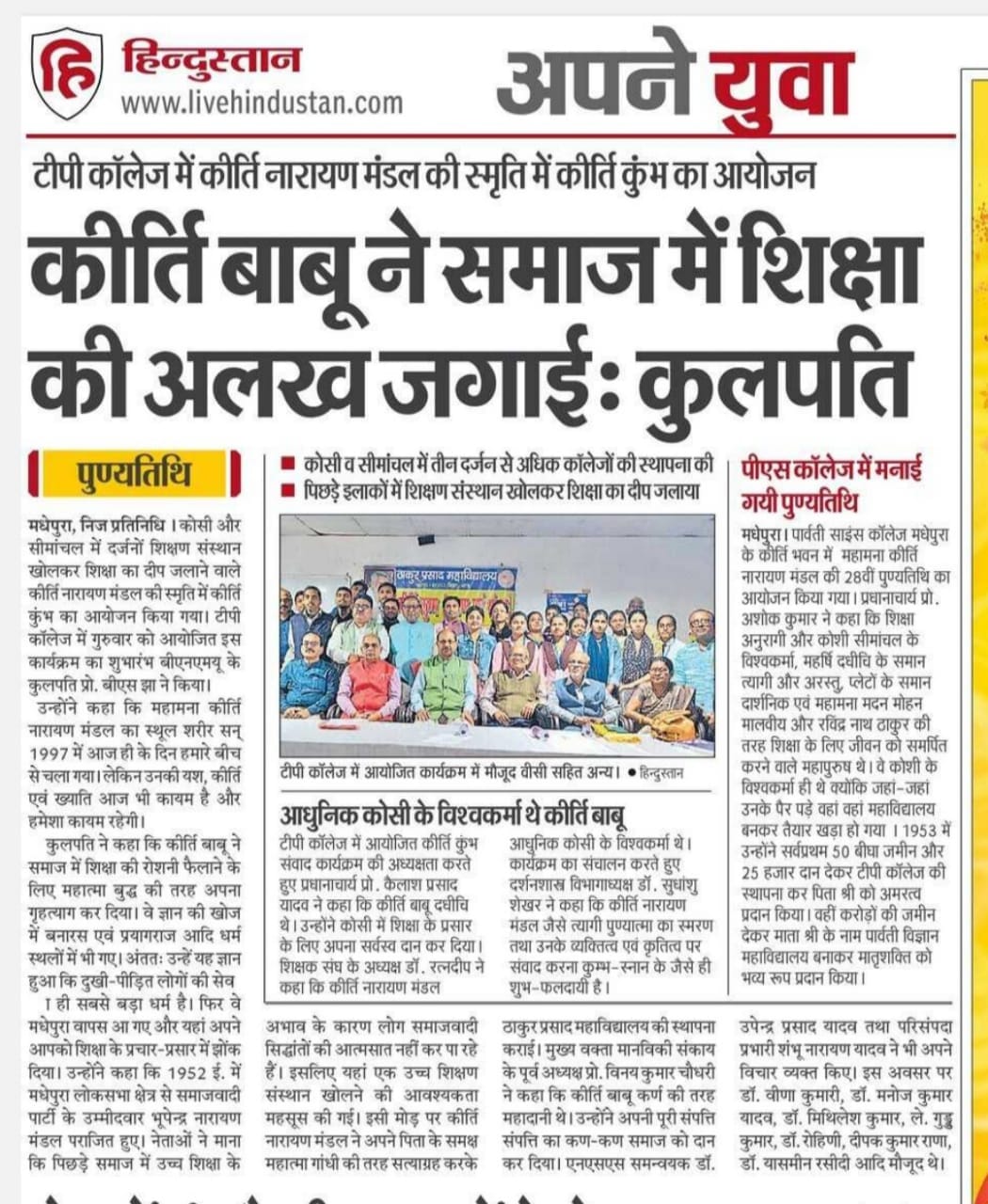 कीर्ति कुम्भ (स्मरण एवं संवाद) कार्यक्रम की रिपोर्ट प्रमुखता से प्रकाशित।
