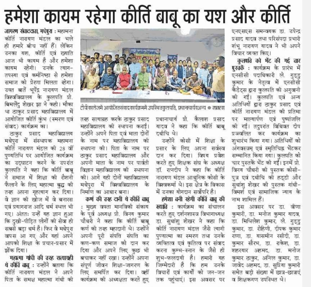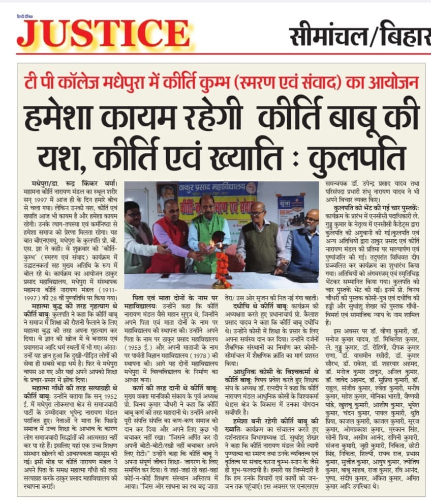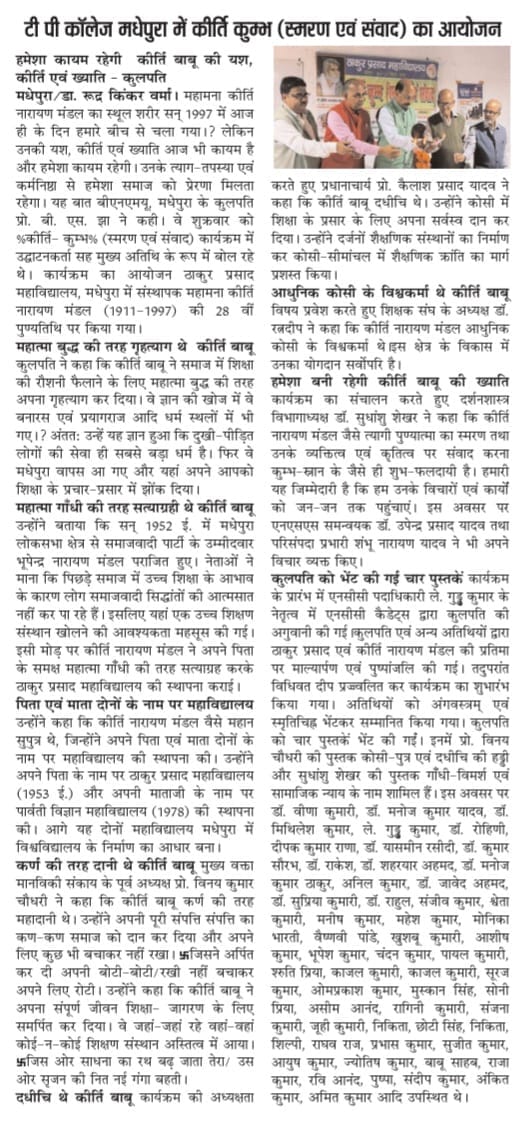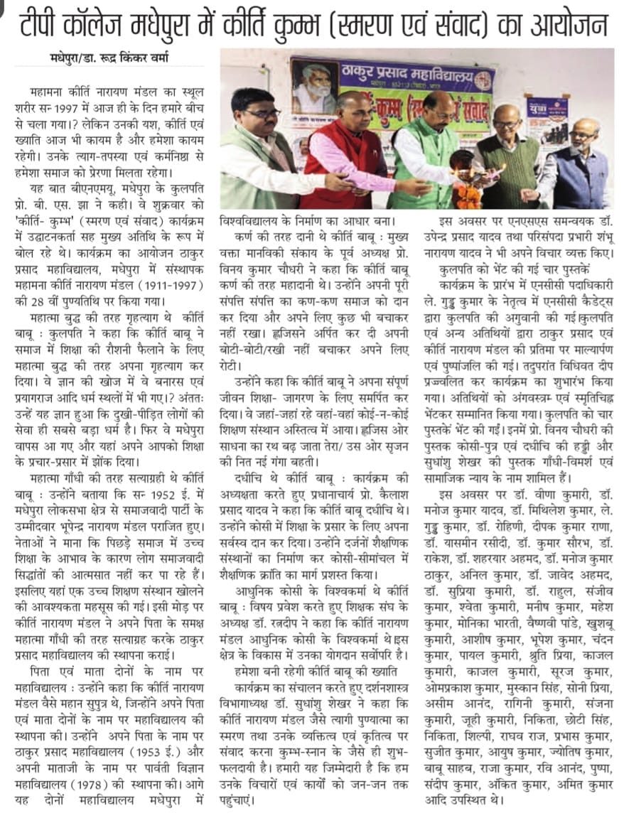 कीर्ति कुम्भ (स्मरण एवं संवाद) कार्यक्रम की रिपोर्ट प्रमुखता से प्रकाशित।