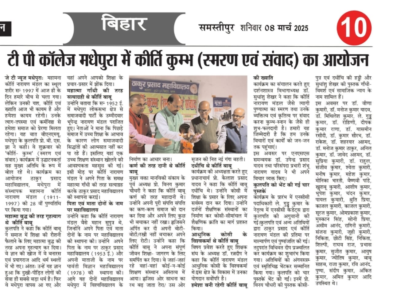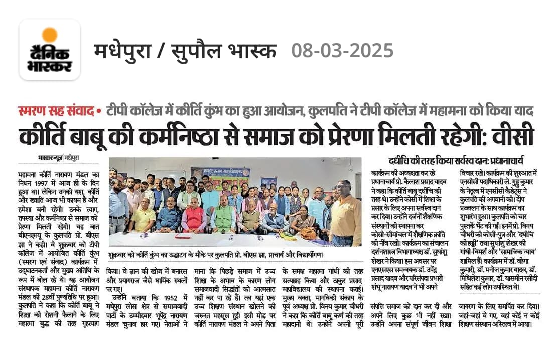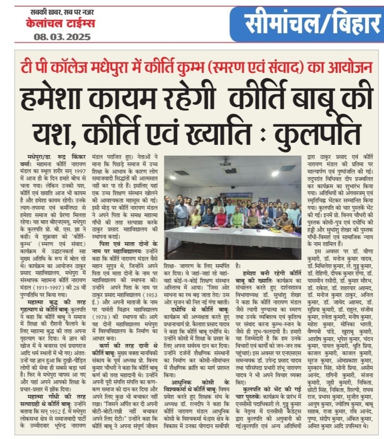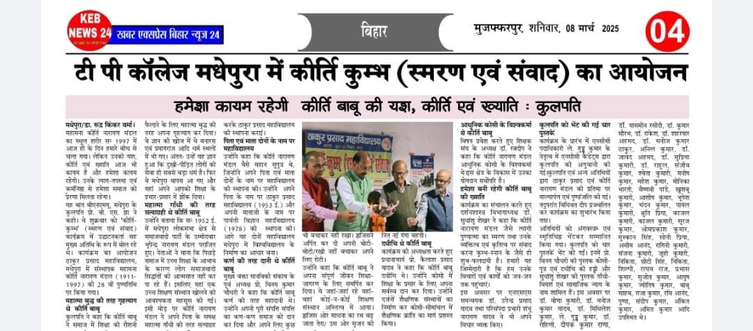 कीर्ति कुम्भ (स्मरण एवं संवाद) कार्यक्रम की रिपोर्ट प्रमुखता से प्रकाशित।