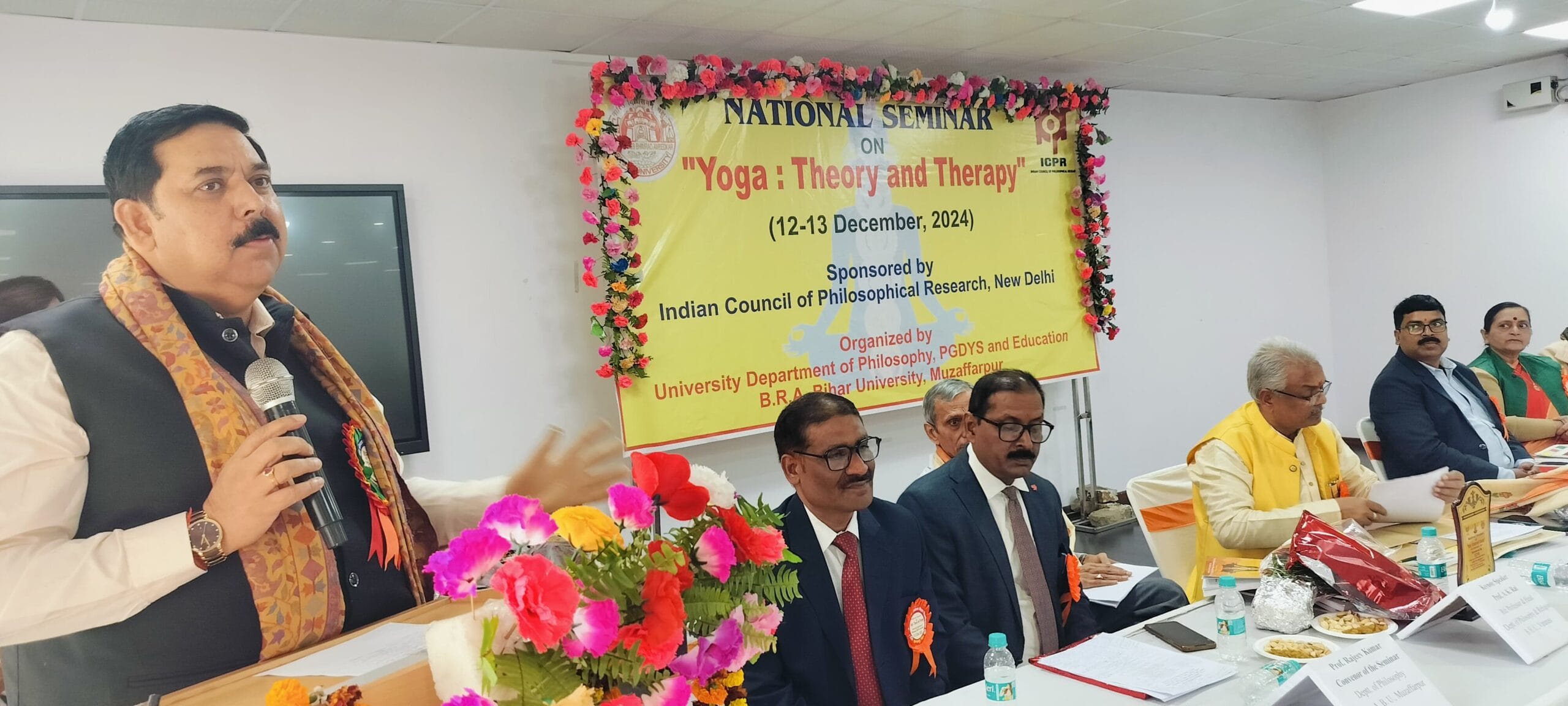 12 दिसंबर, 2024 को बाबासाहेब भीमराव अंबेडकर बिहार विश्वविद्यालय, मुजफ्फरपुर के दर्शनशास्त्र विभाग द्वारा ‘योग : थ्योरी एवं थेरेपी’ विषय पर आयोजित राष्ट्रीय सेमिनार में सहभागिता रही।