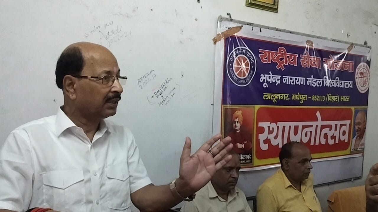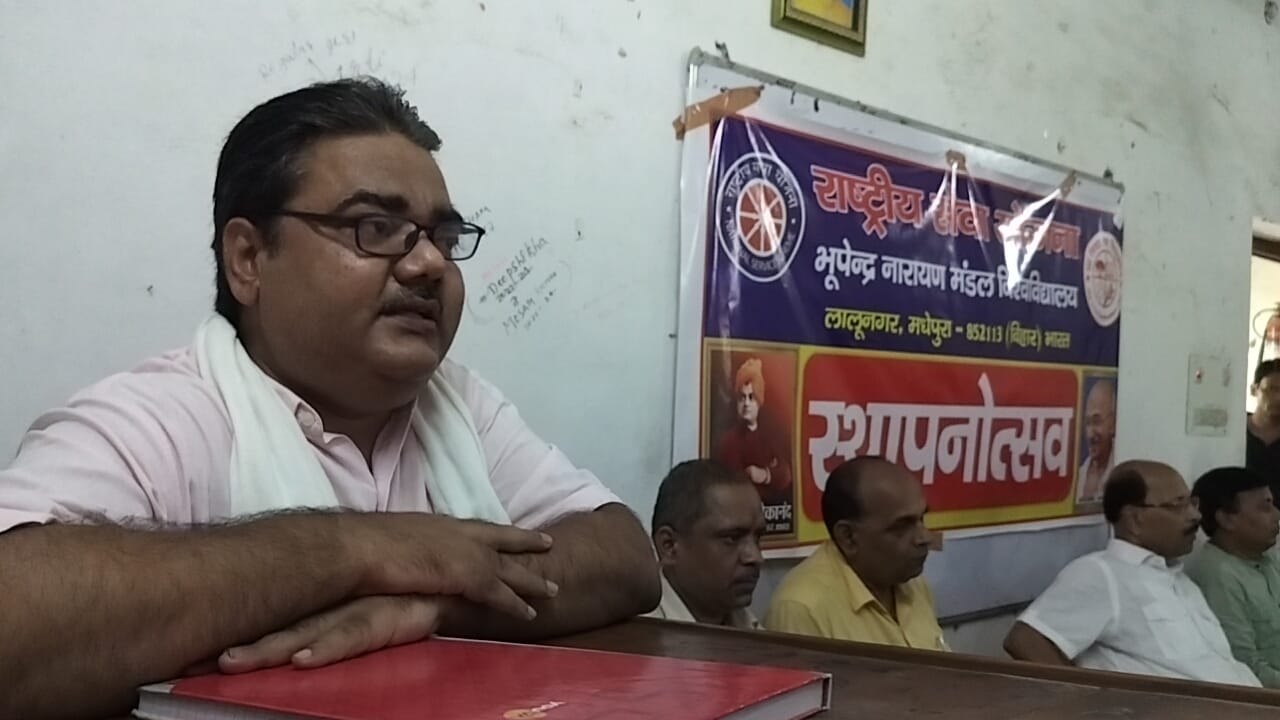 विशिष्ट अतिथि ठाकुर प्रसाद महाविद्यालय, मधेपुरा के प्रधानाचार्य प्रो. कैलाश प्रसाद यादव ने कहा कि आज हमारे देश में करीब 65 फीसदी जनसंख्या युवा है। युवाओं के कंधों पर ही देश के नवनिर्माण की जिम्मेदारी है।संप्रति डिजिटल भारत, कौशल भारत जैसे प्रमुख कार्यक्रमों में भी इसकी महती भूमिका है। यह भारत को विकसित बनाने की योजना को भी जन-जन तक पहुंचाने में लगा है।