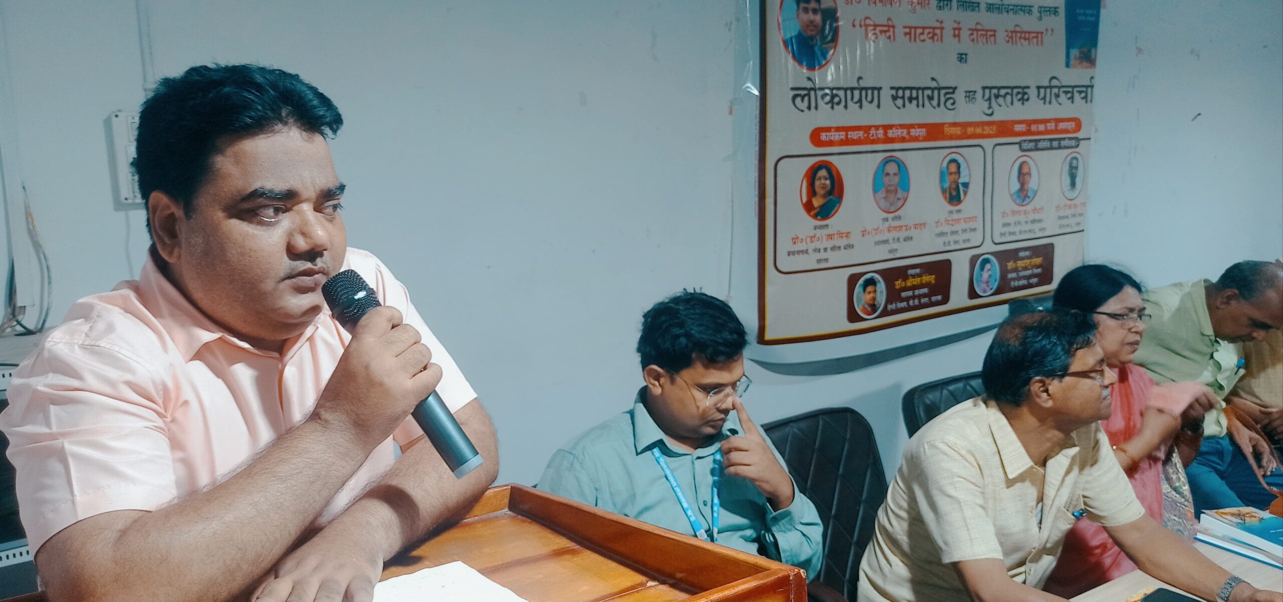 सहायक प्राध्यापक श्री मुन्ना कुमार ने कहा यह पुस्तक समसामयिक मुद्दों पर लिखी पुस्तक है। यह पुस्तक उन चीजों की पड़ताल करता है कि जिन लेखकों ने दलित विषय पर नाटकों के माध्यम से विचार रखते हैं वह कहां तक सही है।