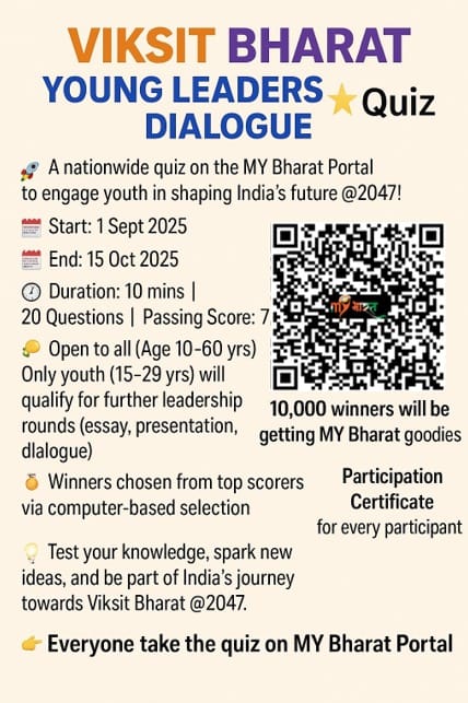 उन्होंने बताया कि यह एक राष्ट्रव्यापी ऑफलाइन क्विज़ प्रतियोगिता है। यह एक सितंबर, 2025 से शुरू हुई है और 15 अक्टूबर, 2025 तक चलेगी।