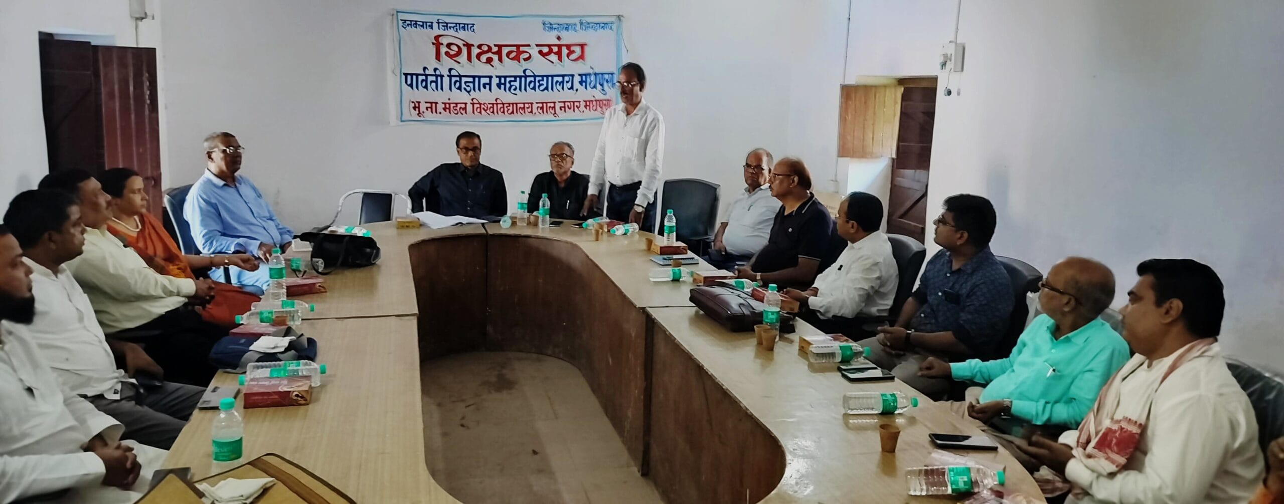 28 जून, 2025 को विश्वविद्यालय शिक्षक संघ की बैठक संघ के अध्यक्ष प्रो. सुभाष प्रसाद सिंह की अध्यक्षता में पार्वती विज्ञान महाविद्यालय, मधेपुरा में संपन्न हुई। इसमें संघ के आगामी अधिवेशन के आयोजन सहित विभिन्न मुद्दों पर विचार-विमर्श किया गया और आवश्यक निर्णय लिए गए। बहुत-बहुत धन्यवाद।