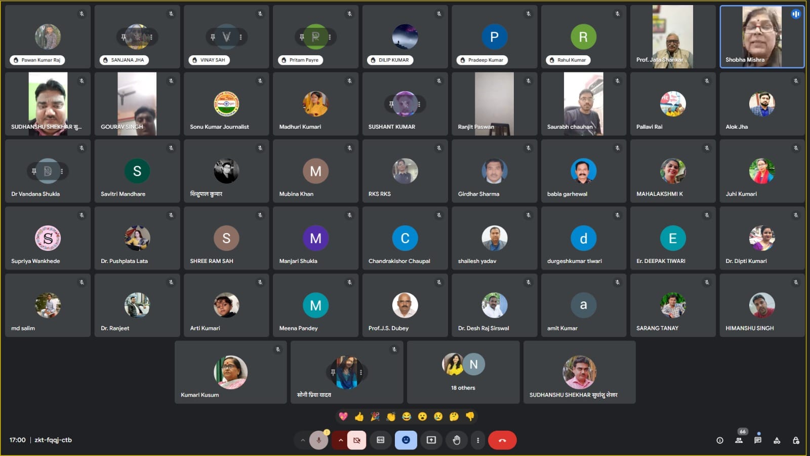 इस अवसर पर मगध विश्वविद्यालय, बोधगया की पूर्व कुलपति प्रो. कुसुम कुमारी, महामंत्री प्रो. जे. एस. दुबे, डॉ. आलोक टंडन, प्रो. शोभा मिश्र, डॉ. सिद्धेश्वर काश्यप, डॉ. मिथिलेश कुमार अरिमर्दन, डॉ. देशराज सिरिसवाल, शिशुपाल कुमार, यास्मीन बानो, विनय शाह, विनय कुमार तिवारी, विकास यादव, वेंकटेश्वर, स्वाति स्वराज, ओमजी पाटिल, स्वाति प्रिया, सुशांत कुमार, सुनील सिंह, सुभद्र कुमार, सुनील, स्नेहा कुमारी, प्रिया शर्मा, श्याम प्रिय, शिवेंद्र प्रताप सिंह, शशि कृष्णा, शैलेश यादव, सर्वोदय सरकार, संजना कुमारी, शशि कृष्णा, संध्या, रूप कुमारी, रेवती रमण, रेनू गुप्ता, रोशन कुमार, रंजीत पासवान, रणधीर कुमार, रजनी सिंह, राहुल यादव, प्रो. हरीश, प्रो. प्रियंका, कुमारी प्रीतम, प्यारे पवन कुमार, राज पल्लवी, राज निषाद, रुबीना खान, मनोज यादव माधुरी कुमारी ललित कुमार, ऋषभ कल्याणी, सारंगी कैलाश प्रसाद, जूही कुमारी, गोपाल डॉ. पुष्पित, डॉ. वंदना साहू, चंद्र किशोर वीरेंद्र कुमार विनीता कुमारी, हिमांशु शेखर सिंह आदि उपस्थित थे।