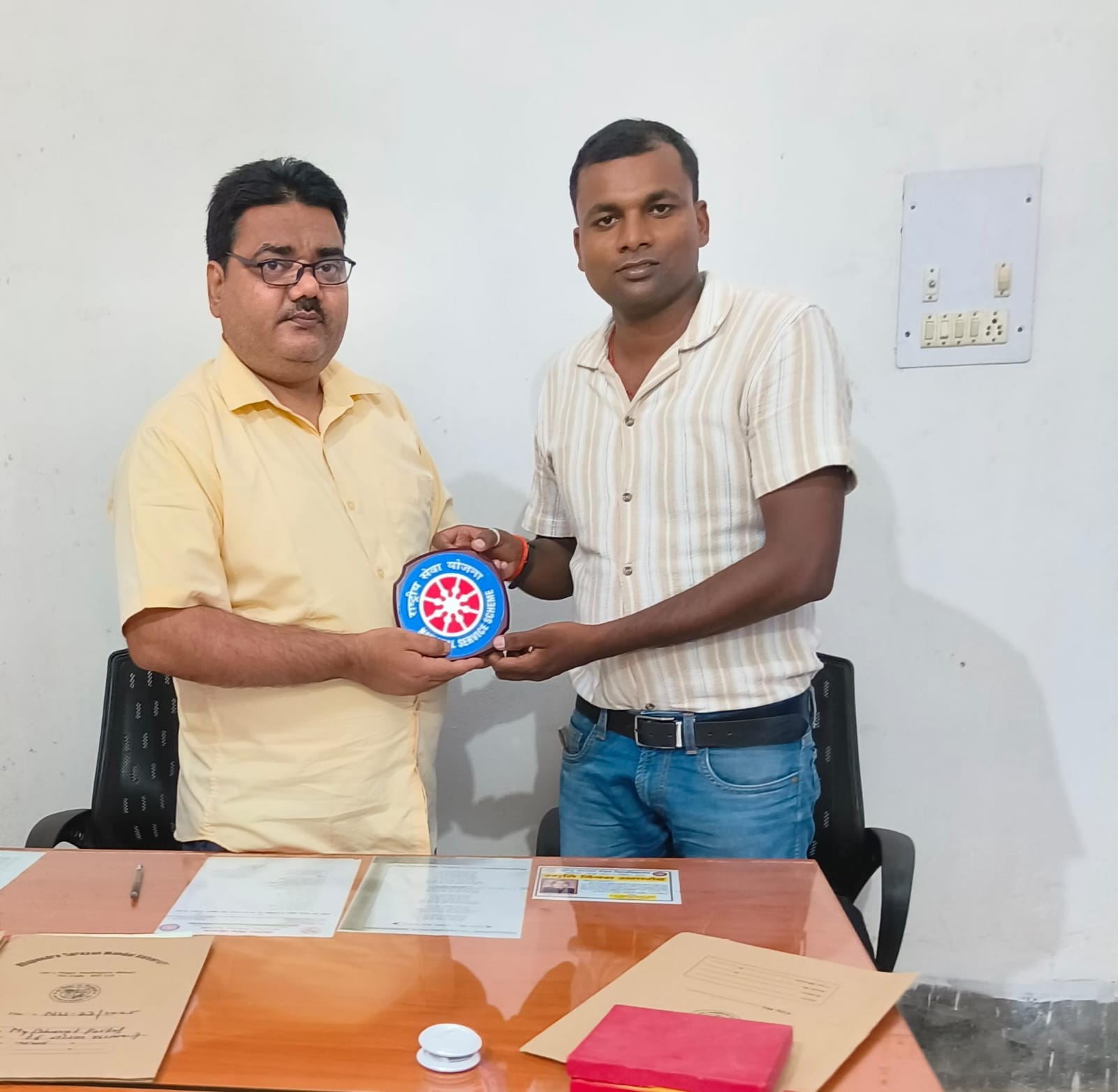 राष्ट्रीय सेवा योजना (एनएसएस) के पूर्व स्वयंसेवक सावंत रवि ने कार्यक्रम समन्वयक डॉ. सुधांशु शेखर से शिष्टाचार भेंट की। उन्होंने समन्वयक को एनएसएस का लोगो भेंट किया। इस अवसर पर कार्यालय सहायक तहसीन अख्तर एवं अन्य उपस्थित थे।