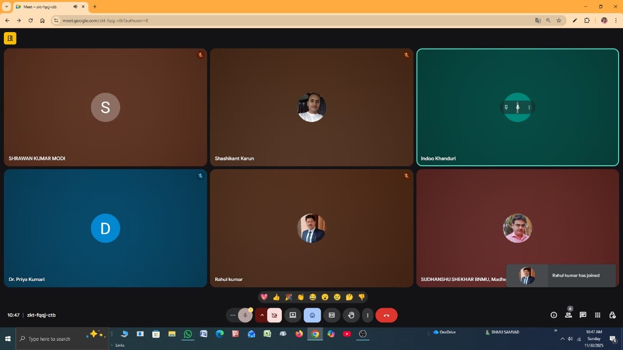 इस अवसर पर प्रो. अविनाश कुमार श्रीवास्तव, प्रो. सिद्धेश्वर काश्यप, डॉ. राहुल कुमार, डॉ. श्रवण कुमार मोदी, डॉ. श्याम प्रिया, शोधार्थी शशिकांत कुमार, रतन कुमार मिश्र, डॉ. राजकुमार झा, दिलिप भट्टाचार्य, मनोज कुमार आदि उपस्थित थे।