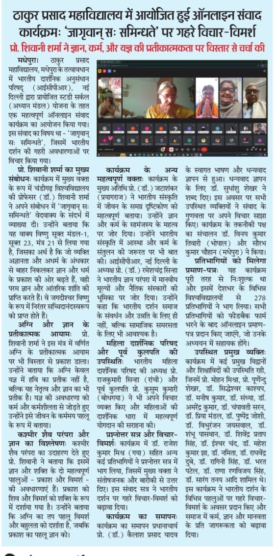 स्टडी सर्किल योजनान्तर्गत आयोजित कार्यक्रम की रिपोर्ट।