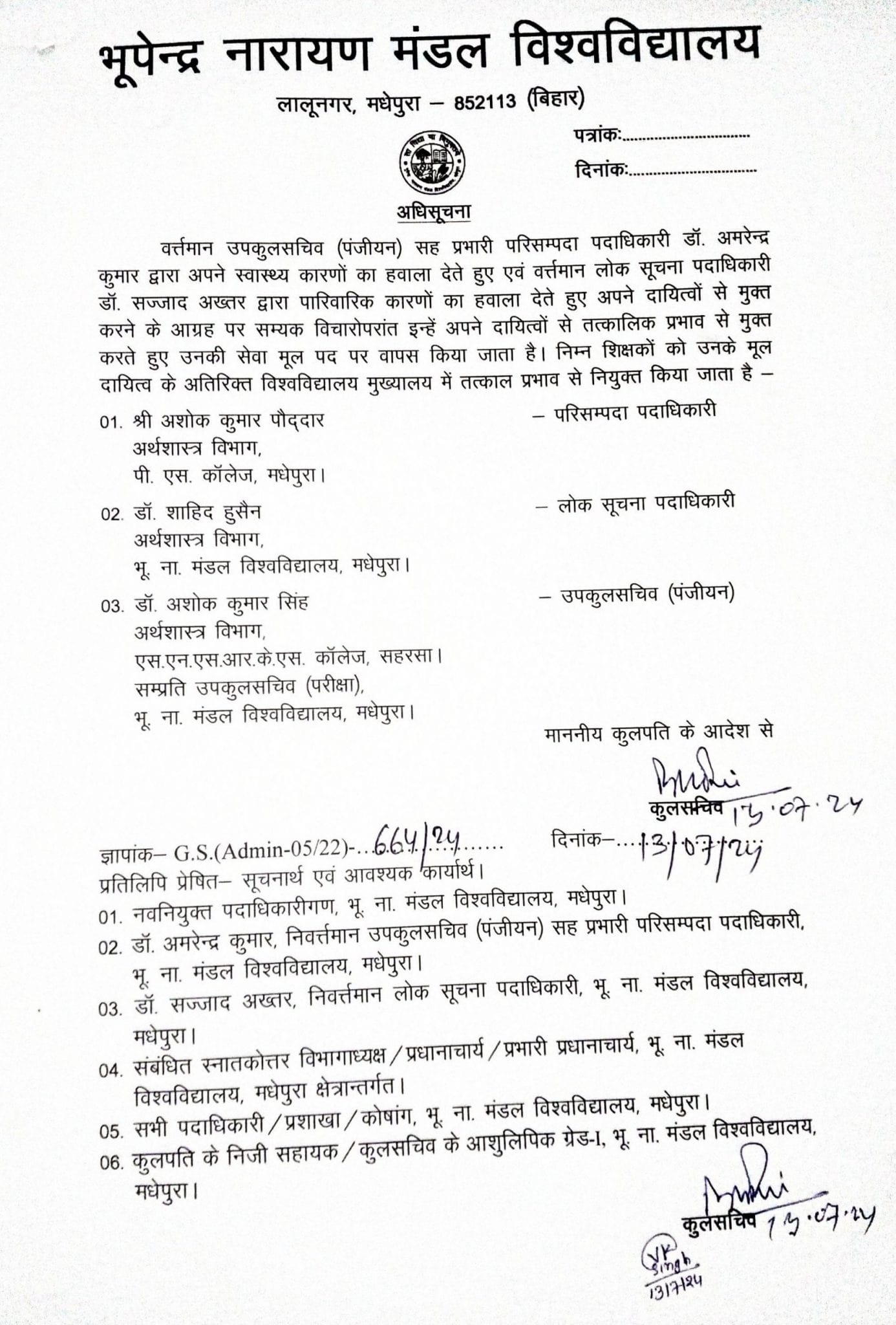 BNMU स्नातक U.G द्वितीय सेमेस्टर परीक्षा फॉर्म भरने की सूचना, स्नातक U.G स्पेशल प्रथम खण्ड का परीक्षा फॉर्म भरने की तिथि बढ़ा दी गई है।