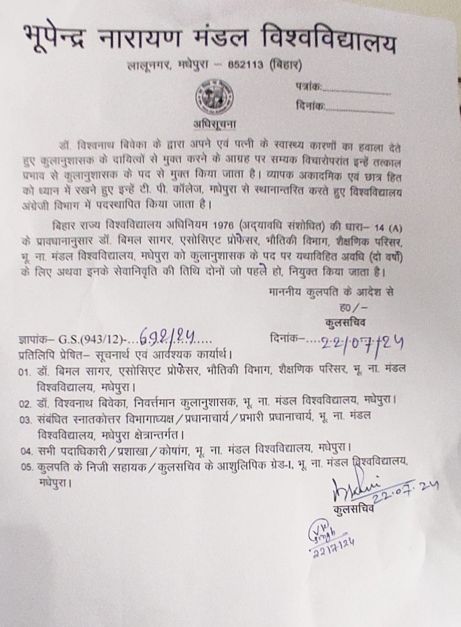बी. एन. मंडल विश्वविद्यालय, लालूनगर, मधेपुरा का कुलनुशासक बनने पर डॉ. बिमल सागर जी को बहुत-बहुत बधाई। #bnmusamvad