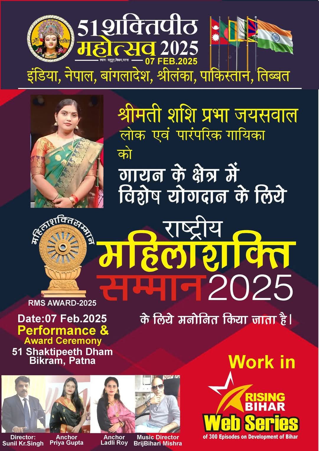 बहुत-बहुत बधाई। ——- सियाराम उच्चतर माध्यमिक विद्यालय जगवनी, जिला-मधेपुरा की संगीत शिक्षिका शशि प्रभा जायसवाल को राष्ट्रीय महिला शक्ति सम्मान-2025 के लिए मनोनीत किया गया