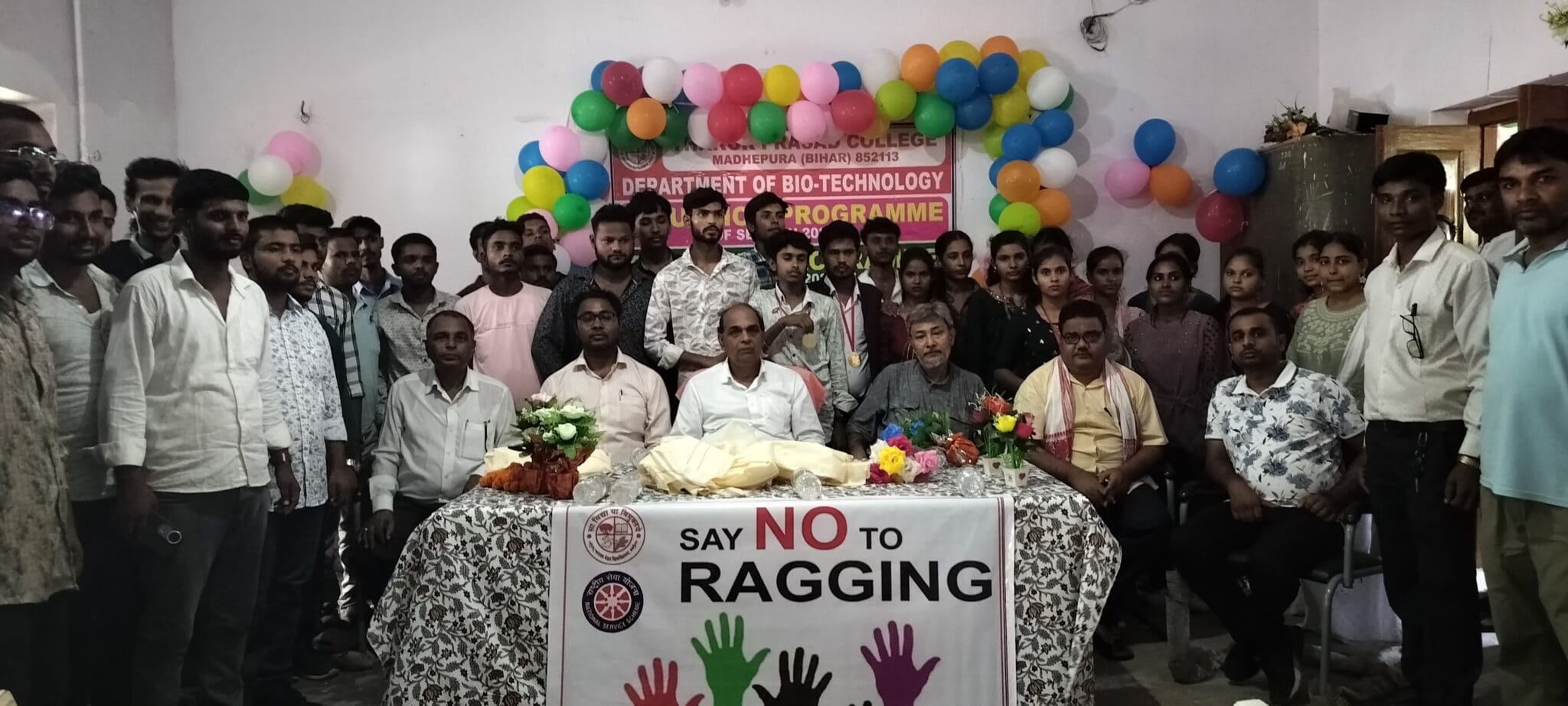 *एंटी रैगिंग जागरूकता कार्यक्रम का आयोजन* ठाकुर प्रसाद महाविद्यालय, मधेपुरा में एंटी रैगिंग सप्ताह के अंतर्गत जागरूकता कार्यक्रम का आयोजन किया गया। कार्यक्रम की अध्यक्षता