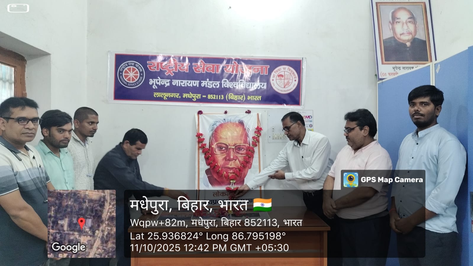 बीएनएमयू, मधेपुरा के राष्ट्रीय सेवा योजना (एनएसएस) के तत्वावधान में प्रशासनिक परिसर अवस्थित कार्यालय में लोकनायक जयप्रकाश नारायण (11 अक्टूबर 1902 – 8 अक्टूबर 1979) की 124वीं जयंती पर श्रद्धांजलि सभा का आयोजन किया गया।