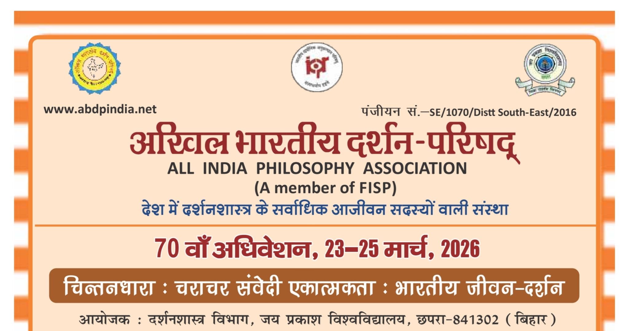 अखिल भारतीय दर्शन परिषद् का 70 वाँ अधिवेशन, 23-25 मार्च, 2026 को।