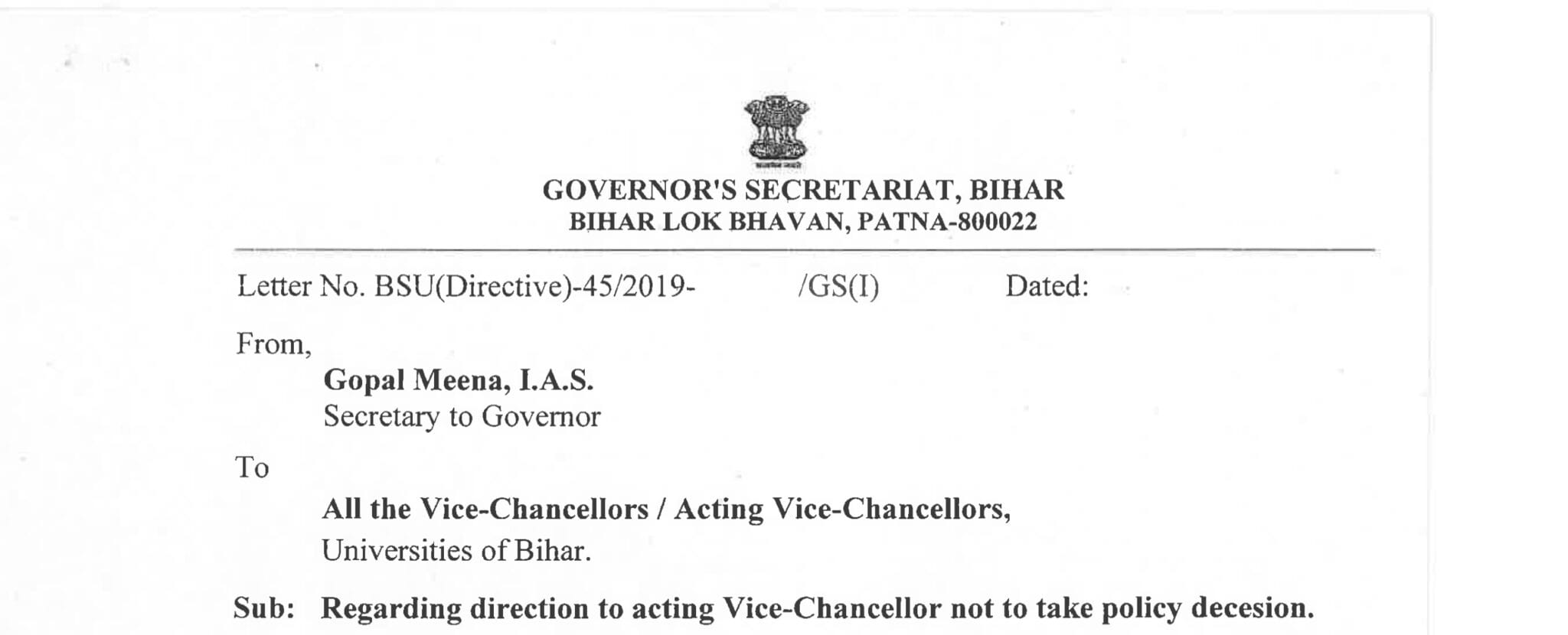 Sub: Regarding direction to acting Vice-Chancellor not to take policy decesion.