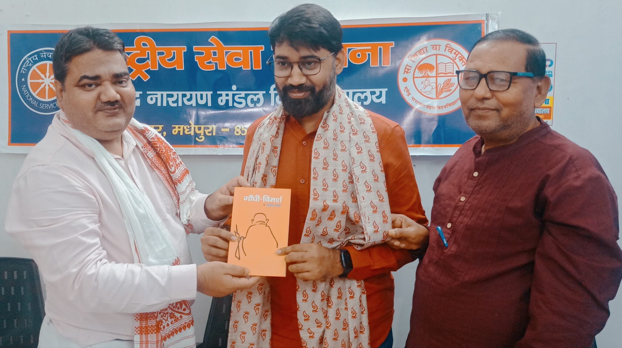 *पत्रकार को पुस्तक भेंट* राष्ट्रीय सेवा योजना (एनएसएस) कार्यालय में शनिवार को अमर उजाला, नोएडा के वरिष्ठ संवाददाता उत्कर्ष चतुर्वेदी को अंगवस्त्रम् एवं गाँधी-विमर्श पुस्तक