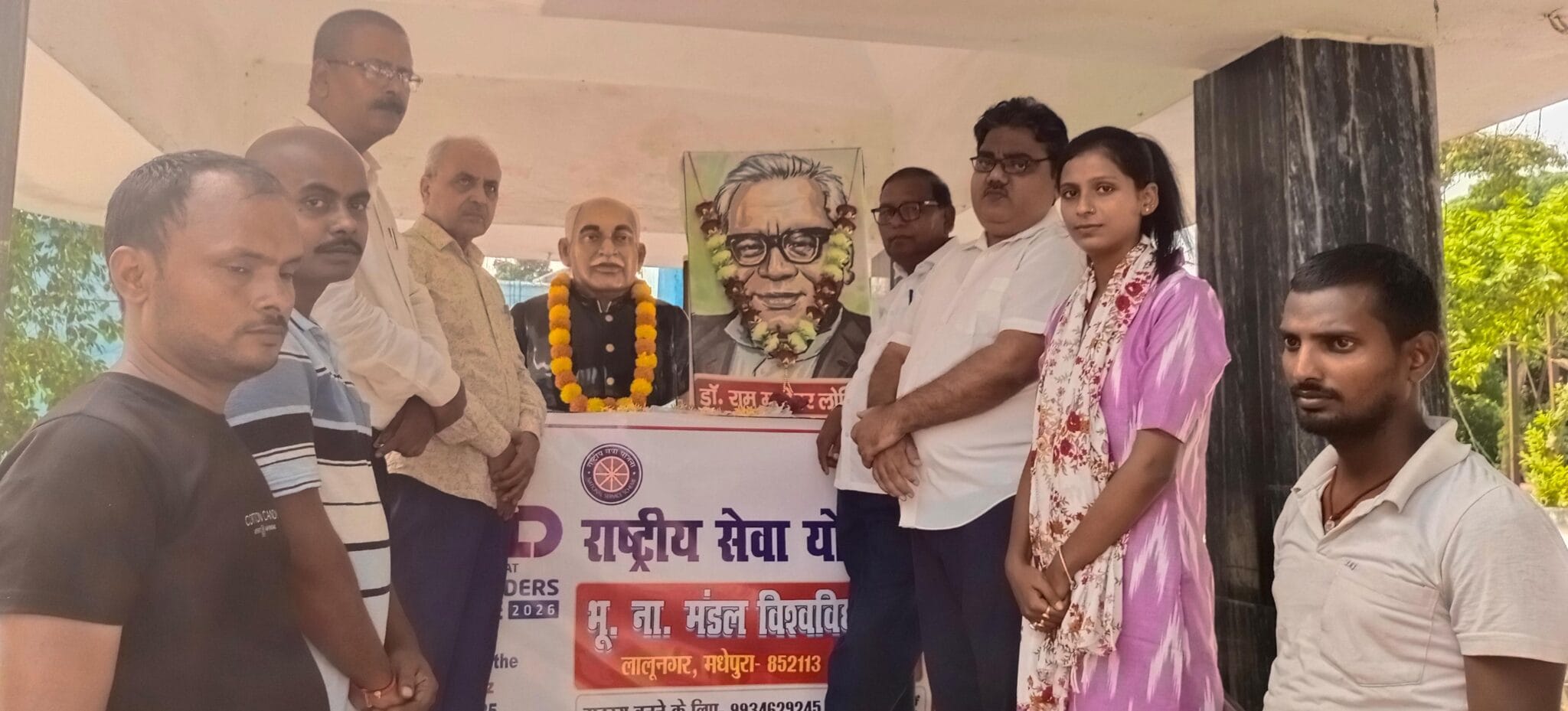 *याद किए गए डॉ. लोहिया* *सच्चे समाजवादी थे डॉ. लोहिया* बीएनएमयू, मधेपुरा के राष्ट्रीय सेवा योजना (एनएसएस) के तत्वावधान में प्रशासनिक परिसर अवस्थित भूपेन्द्र प्रतिमा