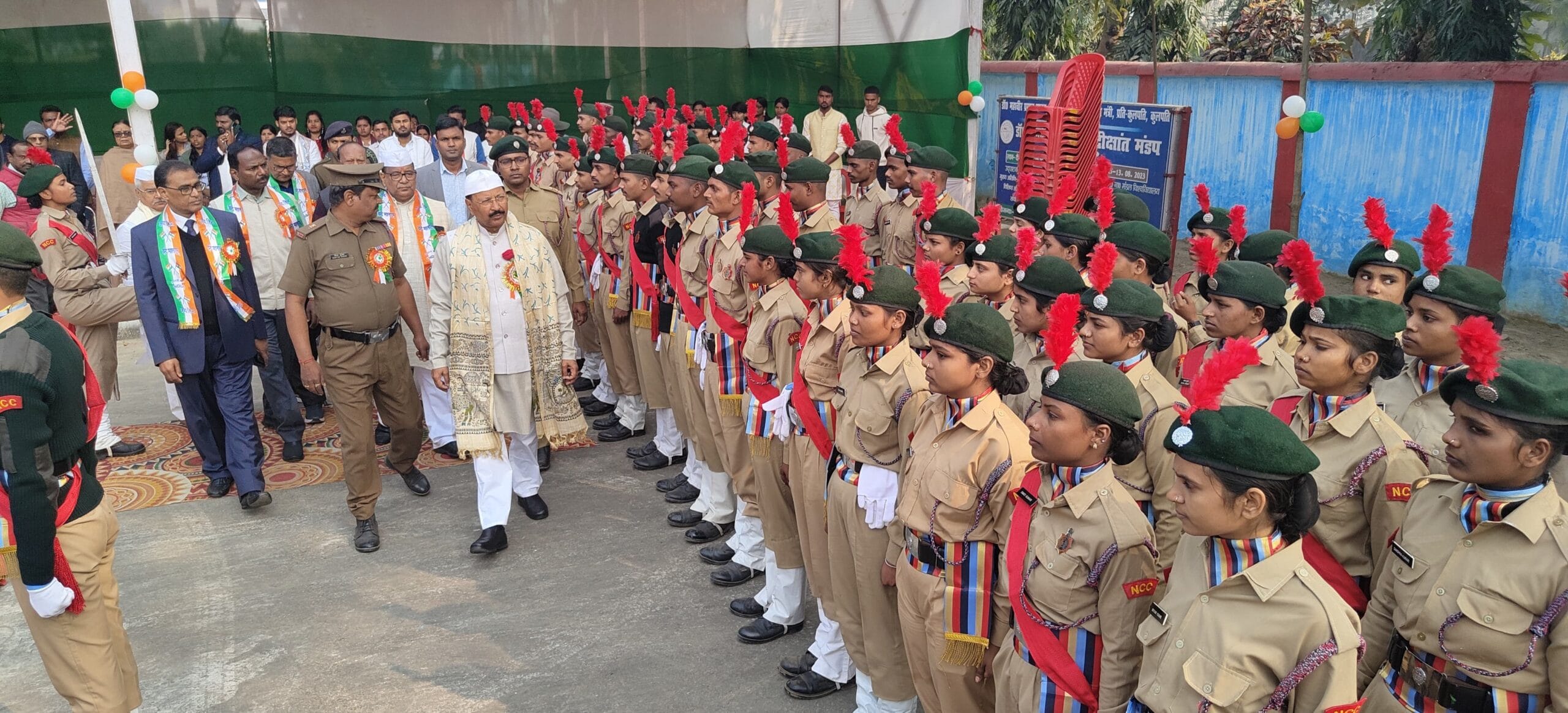 इस अवसर पर मेजर गौतम कुमार एवं ले. गुड्डु कुमार के नेतृत्व में एनसीसी कैडेट्स द्वारा गार्ड ऑफ ऑनर दिया गया। डॉ. पंकज कुमार शर्मा के नेतृत्व में संगीत विभाग के विद्यार्थियों ने जन-गण-मन के सामूहिक गायन में भाग लिया।