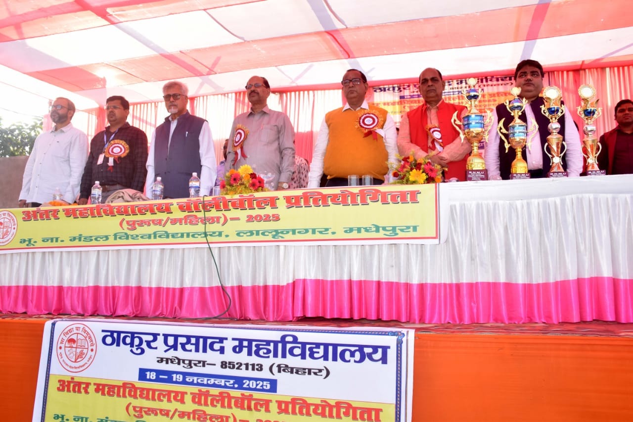 18 नवंबर, 2025 (मंगलवार) को भूपेन्द्र नारायण मंडल विश्वविद्यालय के टी. पी. कॉलेज, मधेपुरा में अंतर महाविद्यालय वॉलीबॉल प्रतियोगिता 2025-26 की शुरुआत हुई। प्रतियोगिता का उद्घाटन कुलपति प्रो.बी.एस.झा ने दीप प्रज्वलन और वॉलीबॉल कोर्ट पर सर्विस के साथ किया । उनके साथ कुलसचिव प्रो.अशोक कुमार ठाकुर, क्रीड़ा एवं सांस्कृतिक परिषद् के निदेशक डॉ.मो.अबुल फज़ल, उप निदेशक डॉ.जैनेन्द्र कुमार और प्राचार्य प्रो. कैलाश प्रसाद यादव भी उद्घाटन समारोह में मौजूद रहे। प्राचार्य के द्वारा सभी अतिथियों का शॉल और माला के साथ स्वागत किया गया।