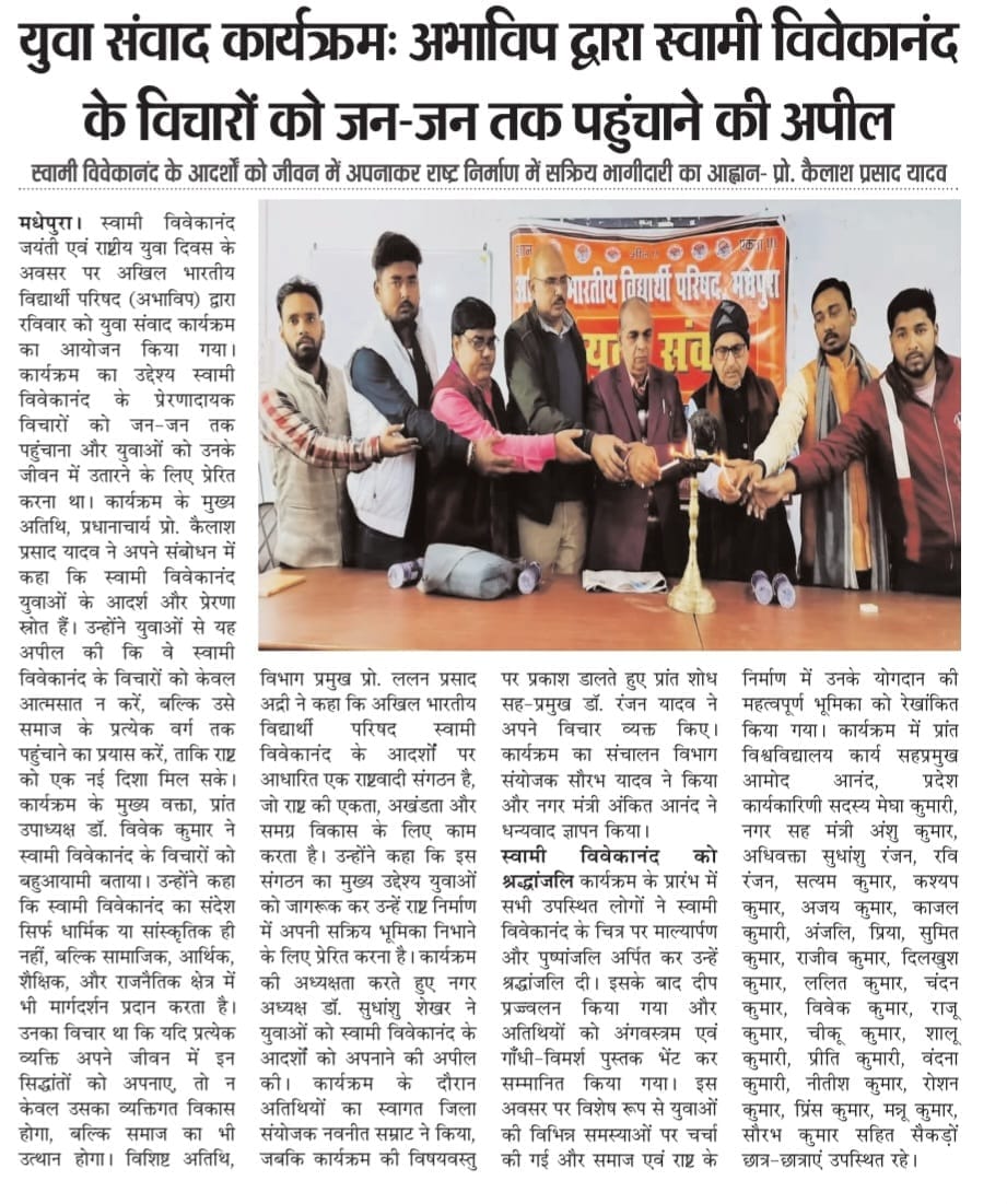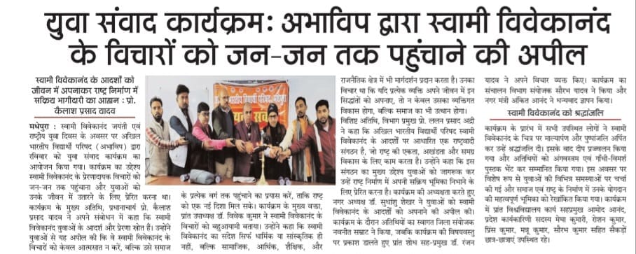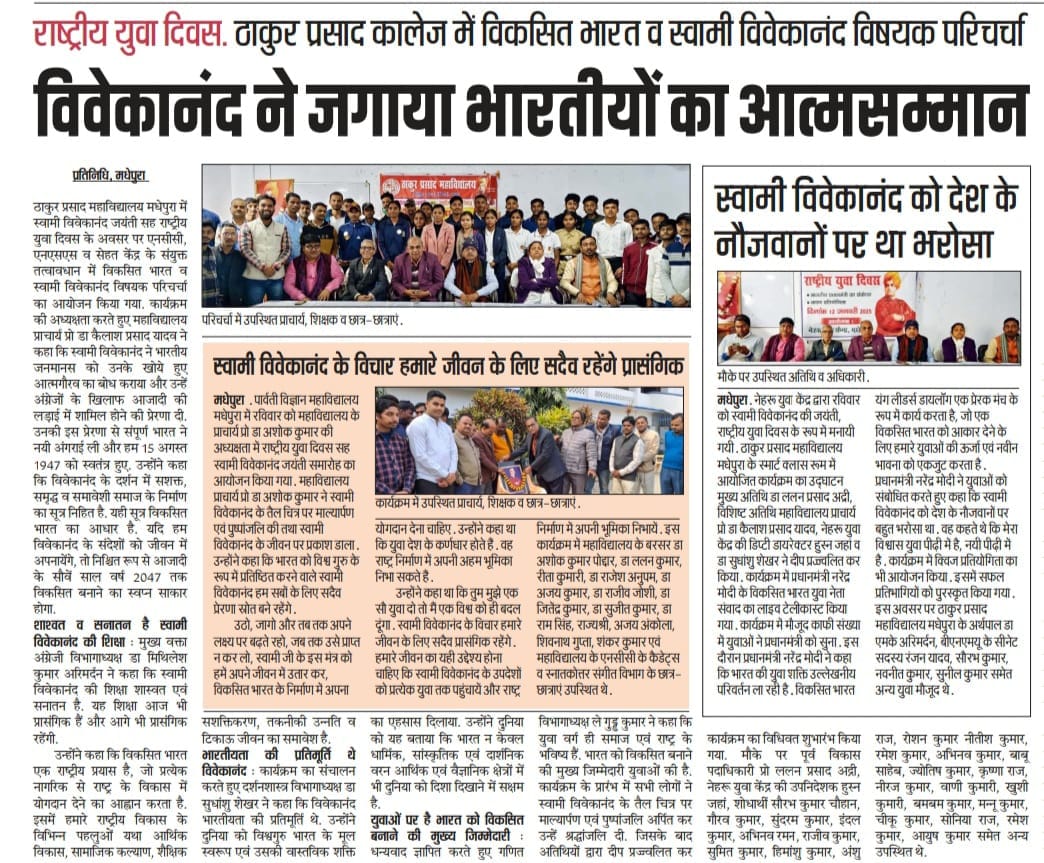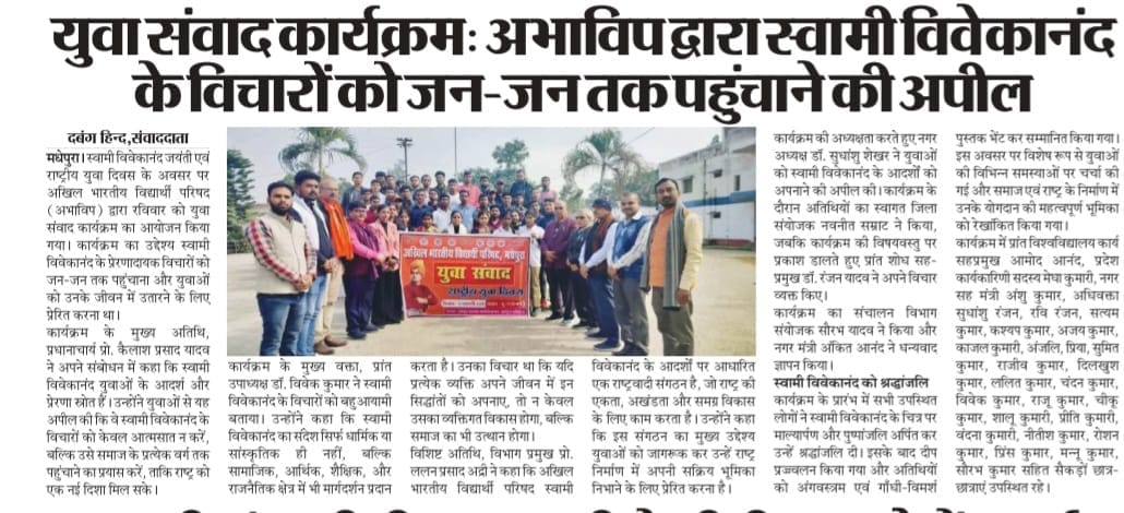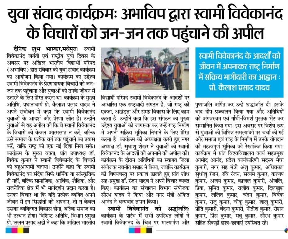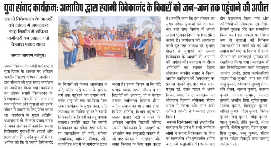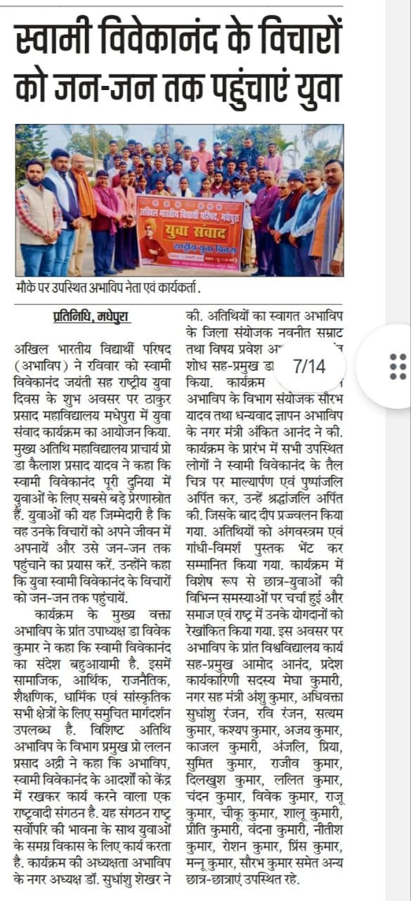 BNMU स्वामी विवेकानंद जयंती सह राष्ट्रीय युवा दिवस से संबंधित खबरें।