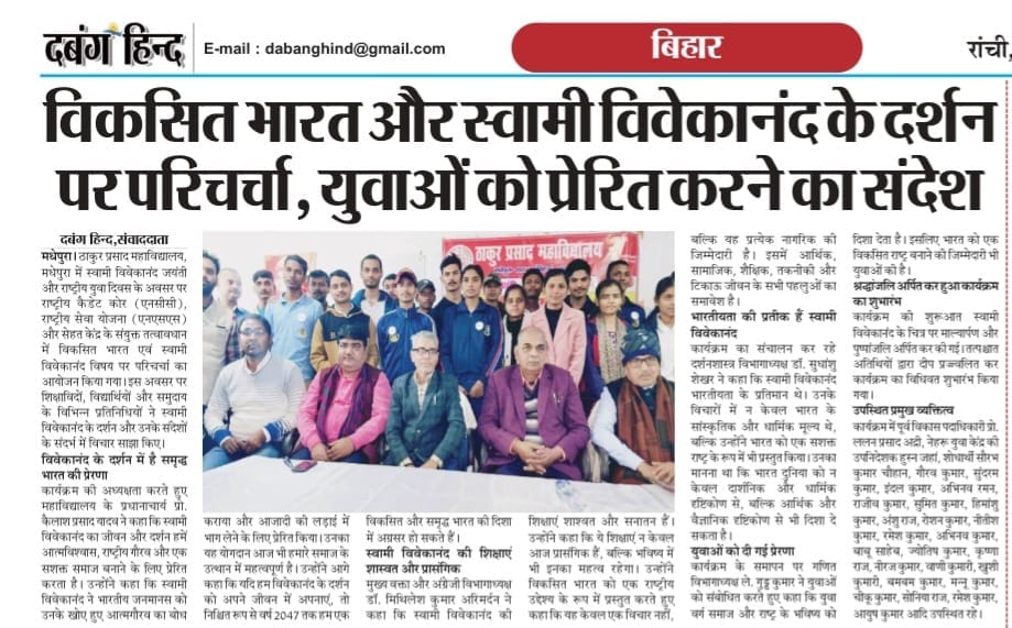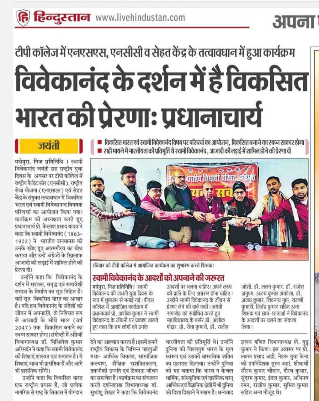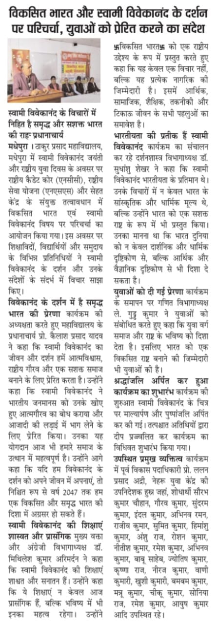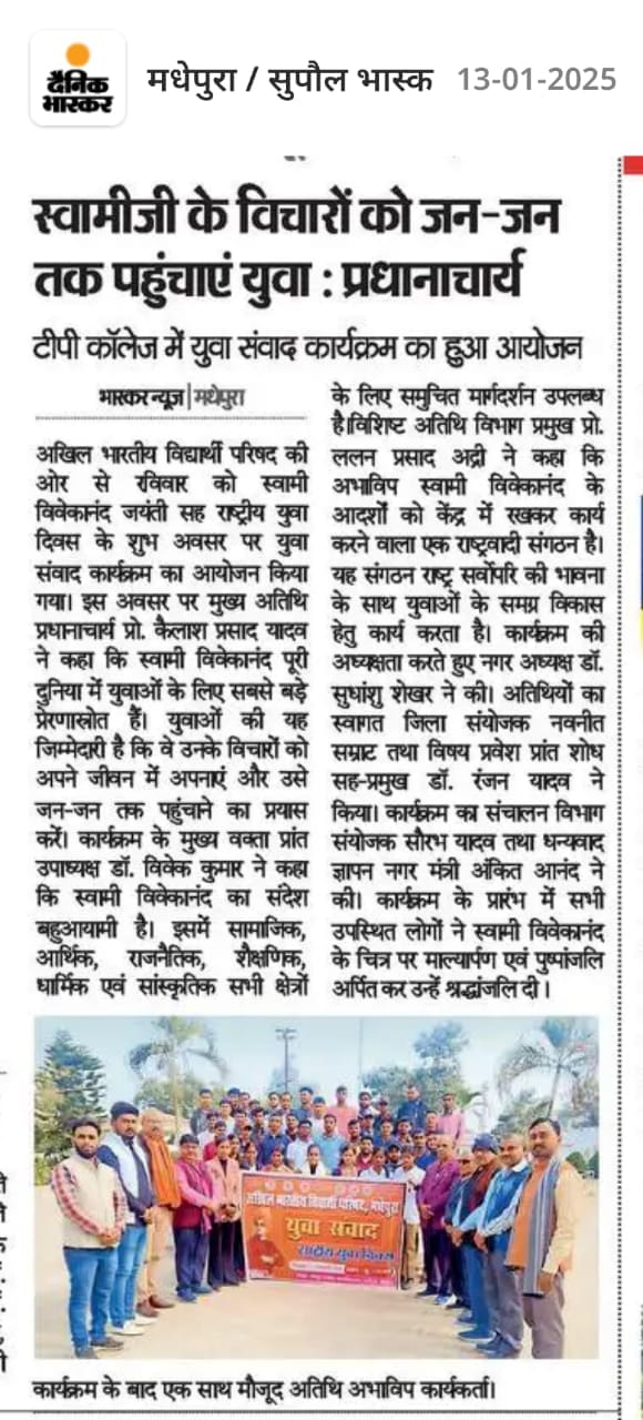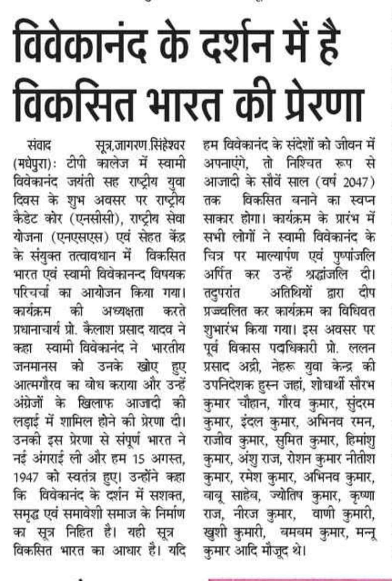 BNMU स्वामी विवेकानंद जयंती सह राष्ट्रीय युवा दिवस से संबंधित खबरें।