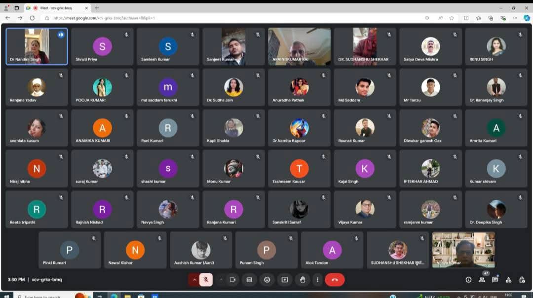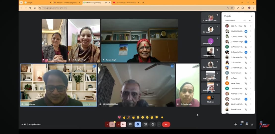 इस आभासीय पटल पर सम्माननीय प्रो. सभाजीत मिश्र, गोरखपुर; प्रो. पूनम सिंह, पटना, प्रो. अविनाश श्रीवास्तव, नालंदा, डॉ. आलोक टंडन, प्रो. चंद्रभूषण सिंह, सिवान; डॉ सुधा जैन, वाराणसी, डॉ सत्यदेव मिश्र, त्रिपुरा; डॉ. रमेश कुमार विश्वकर्मा, डॉ. रणंजय सिंह, वर्धा; डॉ. नवल किशोर, डॉ. अनुराधा पाठक, मुजफ्फरपुर, डॉ सुधांशु शेखर, मधेपुरा; डॉ. मनोज कुमार, पटना; डॉ. श्याम किशोर सिंह, हाजीपुर; डॉ. नमिता कपूर, डॉ. अर्चना सिंह आदि की गौरवमय सहभागिता रही। लगभग 55 लोग इस आभासीय पटल से जुड़े थे। इसमें स्नातक, स्नातकोत्तर और PGDYS के छात्रों ने भी भाग लिया।