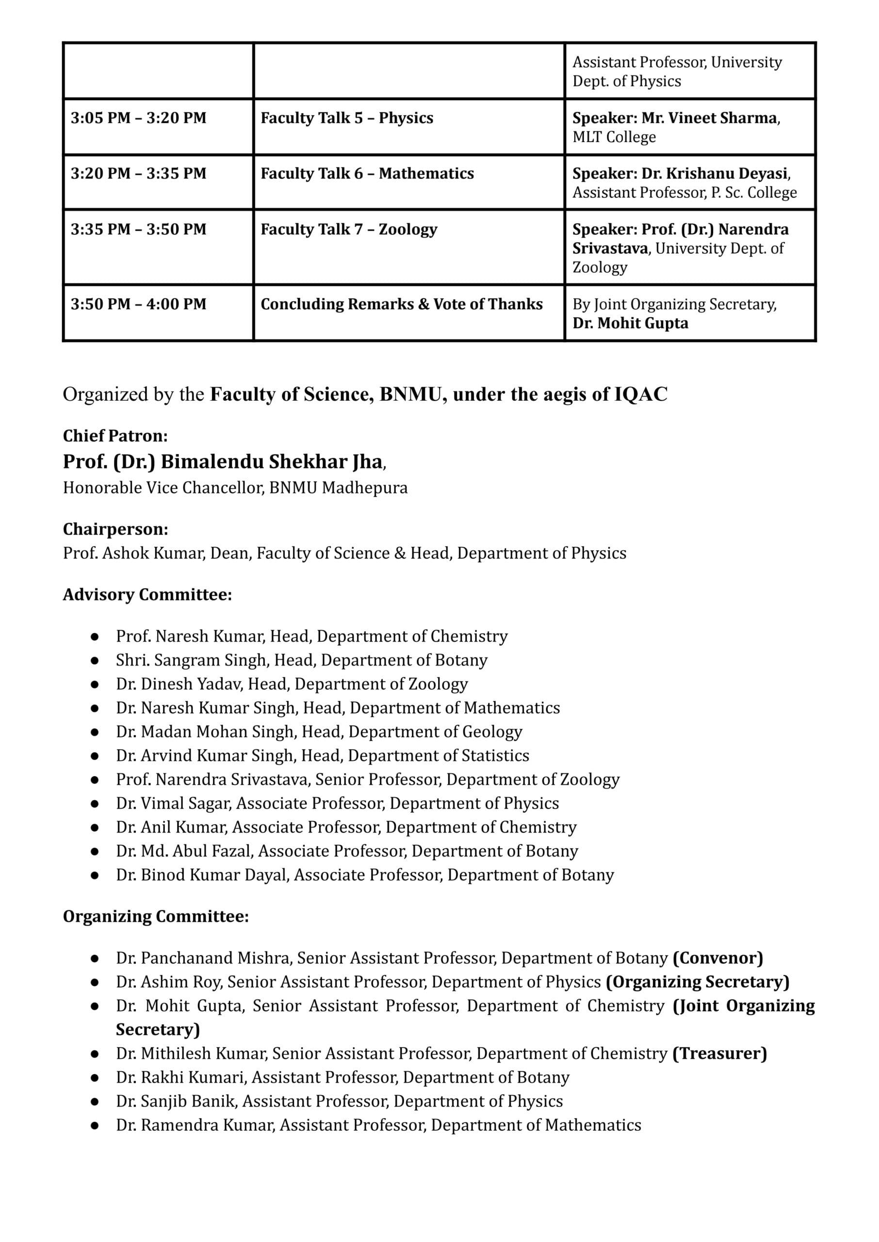 Venue: Science Seminar Hall, BNMU