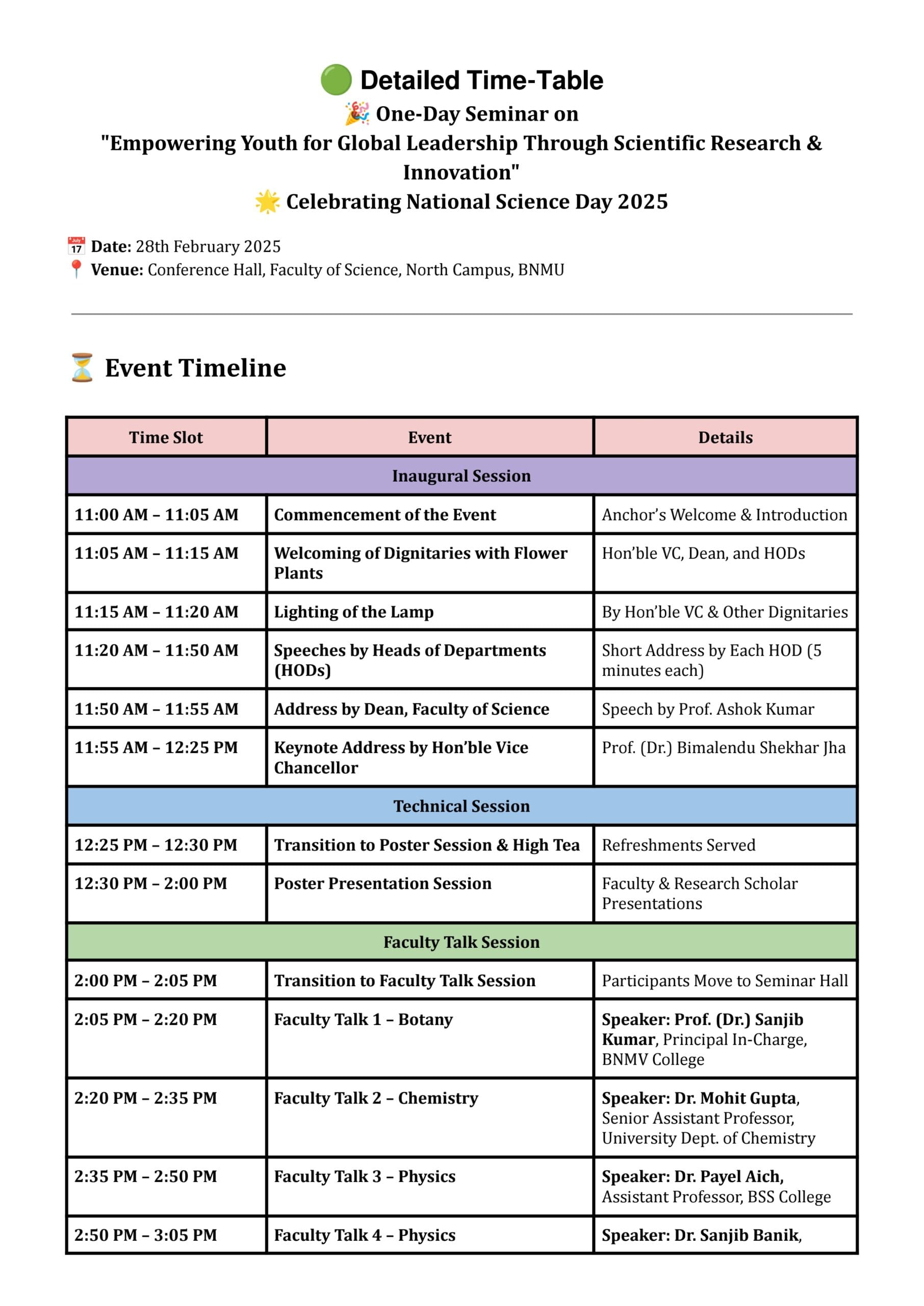 Venue: Science Seminar Hall, BNMU