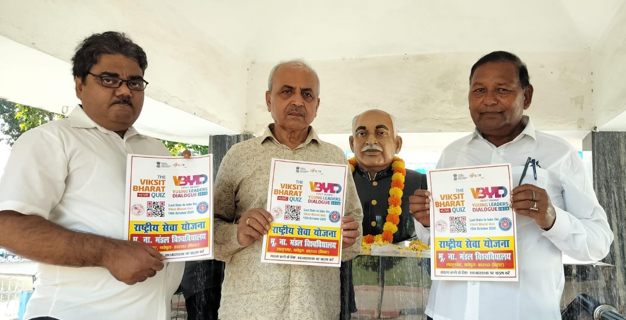 बीएनएमयू, मधेपुरा में रविवार को राष्ट्रीय सेवा योजना के तत्वावधान में विकसित भारत क्विज प्रतियोगिता (ऑनलाइन) का प्रचार-प्रसार किया गया और जगह-जगह इसके पोस्टर लगाए गए। इस अवसर पर प्राचीन भारतीय इतिहास एवं संस्कृति विभाग के पूर्व अध्यक्ष प्रो. ललन प्रसाद अद्री ने बताया कि माय भारत पोर्टल एवं माय गवर्मेंट पोर्टल पर नि:शुल्क क्विज प्रतियोगिता आयोजित हो रही है। इसकी अंतिम तिथि पंद्रह अक्टूबर तक है। इसलिए बिना समय गंवाए इसमें भाग लेने की जरूरत है।