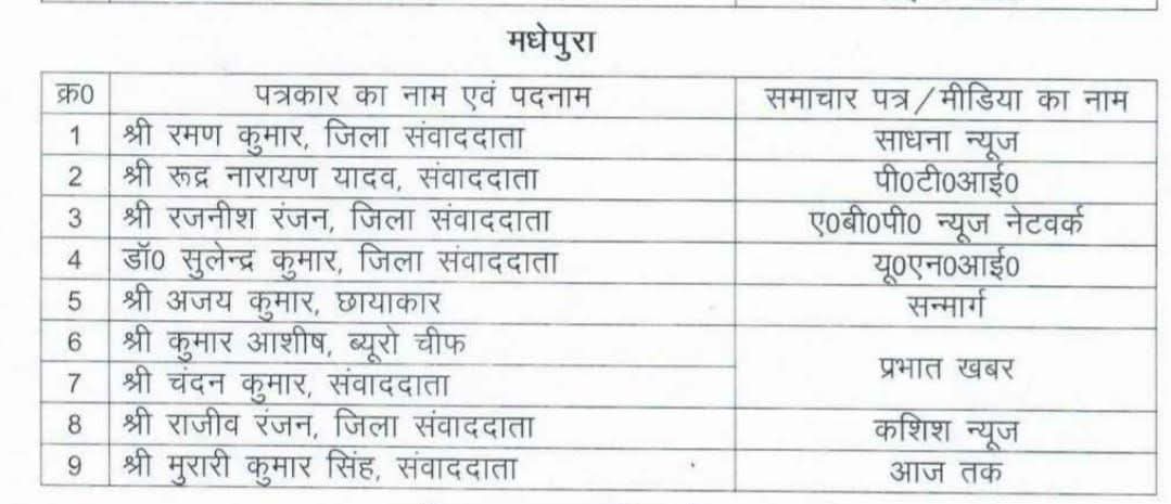मधेपुरा के 9 पत्रकारों को मिली सरकारी मान्यता